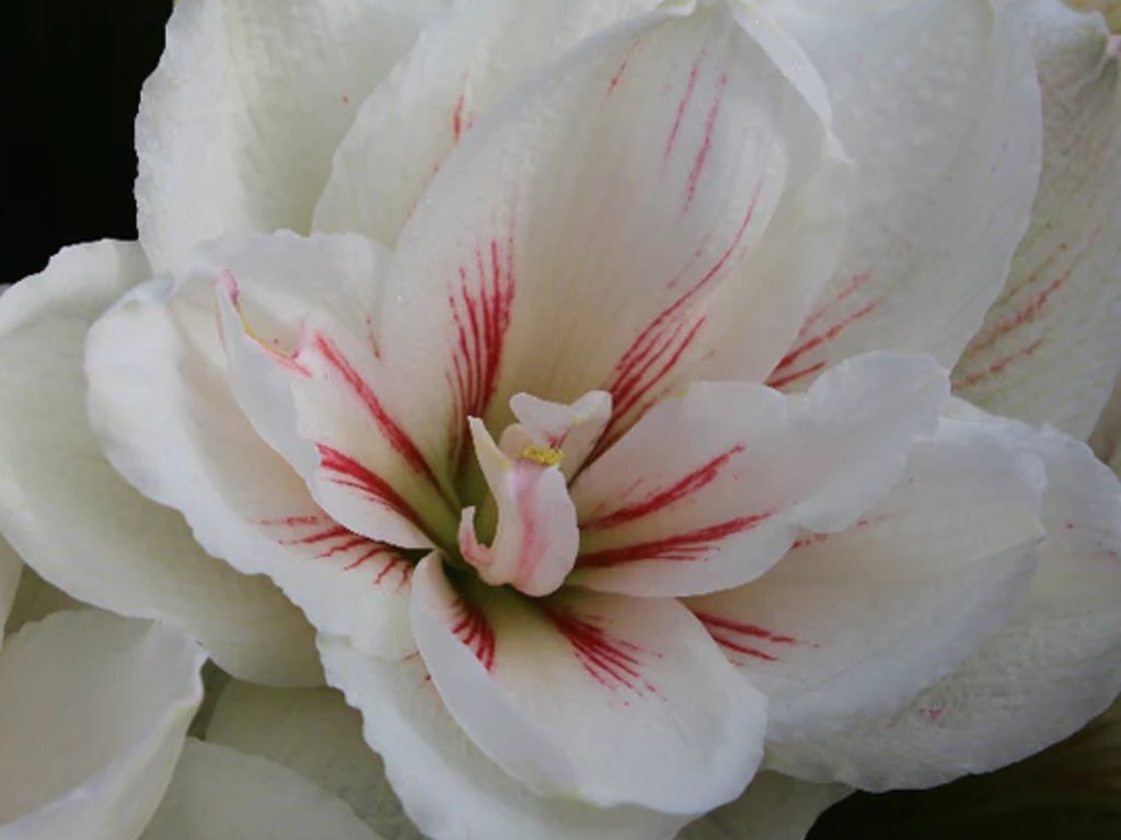 Hvězdník 'Aquaro' - patří mezi cibuloviny původem z tropické a subtropické Jižní Ameriky, kde roste na propustných půdách od okrajů lesů po světlé stráně. Kultivar 'Aquaro' je zařazen do nizozemské šlechtitelské řady Double Galaxy, ceněné pro dvojité, bohatě vrstvené květy připomínající drobné pivoňky. Z masité cibule vyrůstají řemenovité, leskle zelené listy a nad nimi 1–2 stvoly, které v bytových podmínkách obvykle dosahují 40–50 cm. Na každém stvolu se otevírají 2–4 květy s krémově bílým základem a výrazným červeným žíháním až do okrajů. Textura okvětních lístků je pevná a květ si drží plný tvar i při postupném rozkvétání. V interiéru se uplatní jako solitéra v dekorativním květináči, ve vánočních aranžích i jako květ k řezu, protože stvol zůstává po seříznutí stabilní a při teplotě kolem 16–18 °C vydrží květy déle. Cibule i listy obsahují alkaloidy a jsou jedovaté při požití, proto se doporučuje umístění mimo dosah dětí a domácích zvířat.