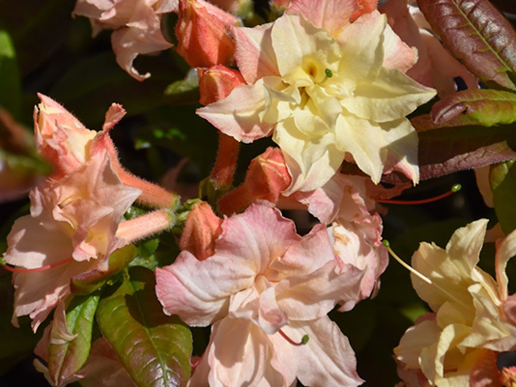 Azalka 'Cannon´s Double' - velmi atraktivní, opadavá azalka s bohatými, plnými květy, patří mezi opadavé velkokvěté azalky knap-hillského typu s výrazným sezónním rytmem. Keř roste středně rychle, má široce vázovitý až lehce rozkladitý habitus a v zahradních podmínkách obvykle dosahuje 1,5–2 m výšky a 1–1,5 m šířky. Výhony se dobře větví a od báze tvoří hustou kostru. Listy raší zjara s bronzovým nádechem, v létě jsou středně zelené a na podzim se zbarvují do červených a oranžových odstínů, keř tak zůstává dekorativní i po odkvětu. Od konce května do poloviny června vytváří polokulovitá květenství o průměru kolem 9 cm, složená ze zhruba 7–8 plných květů širokých asi 5 cm. Z růžových poupat se postupně rozvíjejí květy v měkké paletě meruňkových, krémově žlutých a růžově žilkovaných odstínů, často s teplejším tónem v hrdle. Květy jemně voní a lákají včely a motýly. Kultivar se výborně hodí jako solitéra, do skupin azalek a rododendronů, k vyšším vřesovištním výsadbám i k okrajům vyšších jehličnanů. Stejně jako jiné rododendrony je celá rostlina jedovatá, proto se nevyužívá v jedlých záhonech ani u výběhů zvířat.