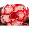 Begonie 'Bicolor Picotee' White & Red - patří mezi begonie typu picotee, které se vyznačují kontrastním lemováním okvětních plátků. Květy jsou velké, plné a mají čistě bílý základ, jenž je po obvodu pravidelně zvýrazněn sytě červeným okrajem, což vytváří výrazný a elegantní vzhled. Barva je též jemně naznačena po celé délce květů. Rostlina dorůstá v dospělosti výšky okolo 25 až 30 cm a šířky přibližně 20 až 30 cm a vytváří hustý, vyrovnaný habitus. Kvetení probíhá plynule od června do října, přičemž květy jsou dobře patrné nad tmavě zelenými, masitými listy. Není mrazuvzdorná a pěstuje se jako sezónní rostlina s nutností vyjmutí a přezimování hlíz. Díky výraznému barevnému kontrastu je vhodná jako dominantní prvek letních kompozic a reprezentativních nádobových výsadeb.