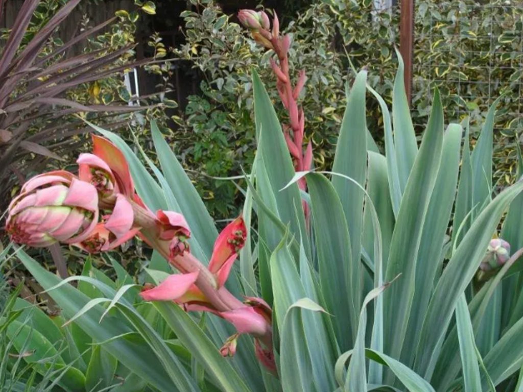 Beschornerie jukovitá - stálezelená, růžicovitě rostoucí trvalka z čeledi chřestovitých, příbuzná agáve a jukám. V přírodě pochází z horských oblastí Mexika, z kamenitých svahů a okrajů roklí v pásmu kolem 2600–3400 m. Na zahradě vytváří bezkmennou růžici páskovitých listů 50–60 cm dlouhých a 3–5 cm širokých, šedozelených až sivých, bez ostrých trnů, jen s jemně zubatým okrajem. Růst je pomalý až střední, trs se rozšiřuje odnožemi a v dospělosti mívá přibližně 0,6 m výšku a 1,0–1,2 m šířku. V květnu až červenci vyrůstá květní stvol vysoký obvykle 0,9–2,1 m, často lehce obloukovitý. Na stvolu se otevírají převislé trubkovité květy zelenožluté barvy s nápadně červenými listeny, které dávají květenství korálový tón. Architektonický habitus funguje jako solitéra ve štěrku, na suchých svazích, u zídek i v nádobách, kde vynikne tvar růžice. V kompozicích ladí se suchomilnými travami a trvalkami, například s kostřavami, perovskií nebo šalvějemi.