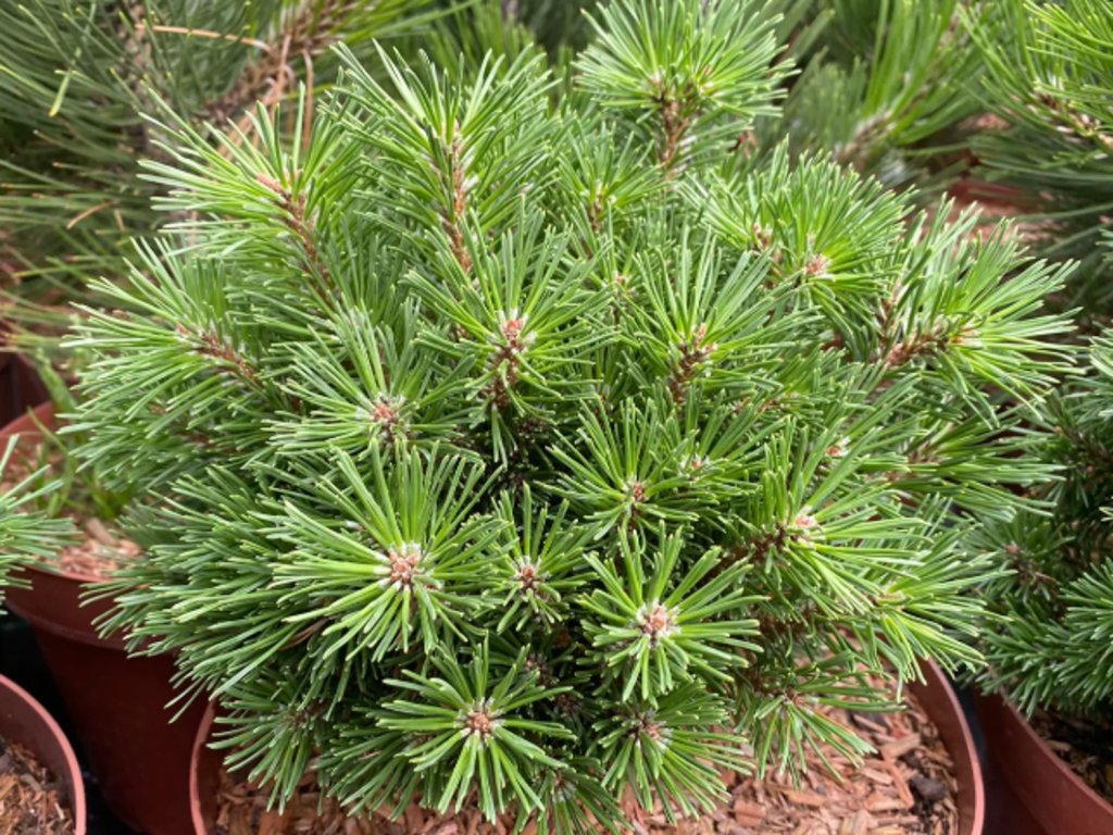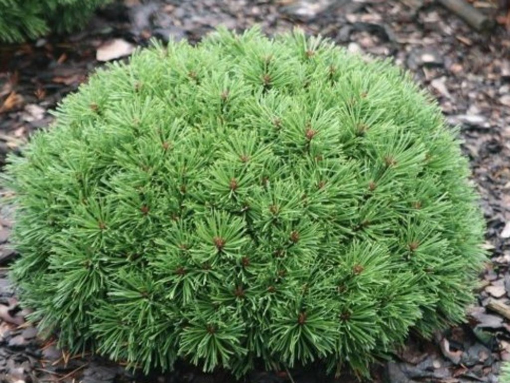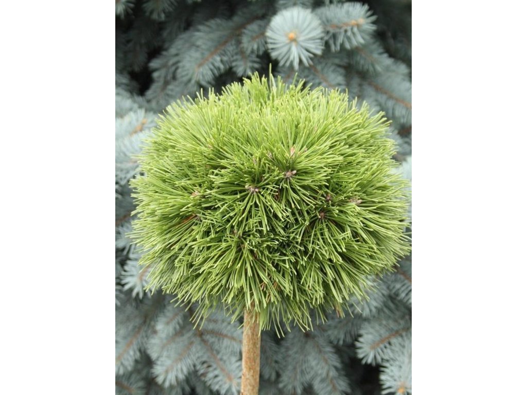 Borovice blatka 'Titus' - atraktivní kultivar borovice, tvořící téměř dokonale kulaté, husté bochánky. Jehlice jsou hráškovitě zelené barvy. Kultivar standardně dorůstá do výšky okolo 0,4 m a čírky kolem 0,5m, těchto rozměrů dosáhne přibližně 10. rokem po výsadbě. Růst je tedy velmi pomalý. Má nízké nároky na půdu a je extrémně odolná vůči nepřízni počasí. Vypadá mimořádně efektně naroubovaná na nižším kmínku, kdy sama tvoří dokonale kulovité korunky. Jehlice jsou středně dlouhé, sytě zelené, měkké a na koncích jsou zakončené hrotem. Narůstají v opravdu hojném množství po celé délce větviček. Skvěle poslouží v trvalkovém záhonu, skalkách nebo v nádobách. Opravdu povedený kultivar, který by rozhodně neměl chybět právě ve Vaší zahradě.