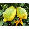 Cedrát 'Maxima' - odrůda cedrátu, která zaujme velikostí plodů i celkovým vzrůstem. Pochází z oblastí tradičního pěstování cedrátů v subtropickém pásmu, kde se používá především v kuchyni a cukrářství. V příznivých podmínkách dokáže dorůst několika metrů, v naší nádobové kultuře se výška běžně udržuje kolem 1,8–2,2 m a šířka přibližně 1–1,5 m. Habitus je vzpřímený až nepravidelně rozkladitý, větve jsou trnité a vznikají na nich krátké až středně dlouhé trny. Listy jsou velké, kopinaté až téměř široce eliptické, kožovité, sytě tmavě zelené a po pomačkání uvolňují typickou citronovou vůni. Květy se objevují převážně od března do května, jsou bílé až lehce narůžovělé s fialovým nádechem na vnější straně, uspořádané ve shlucích a velmi aromatické. Při vhodných podmínkách může následovat slabší vlna kvetení i na podzim. Z květů se vyvíjejí citrónovitě až vejčitě tvarované plody se silně zvrásněnou žlutou slupkou a nápadnou velikostí. V dobrých podmínkách dosahují délky přes 20 cm a hmotnosti až okolo 2 kg. Slupka je velmi tlustá, bohatá na éterické oleje, výrazně aromatická, vnitřní bílá část je po spaření nasládlá a křehká, vhodná ke kandování. Dužnina je světle žlutá, středně šťavnatá, výrazně kyselá, chuťově blízká citronu. Plody obsahují vitamin C a flavonoidy typické pro citrusy, které se uplatňují jako součást pestré stravy. V domácím použití slouží nejčastěji kandovaná kůra do pečiva a dezertů, čerstvě strouhaná slupka do koláčů a krémů, dužnina a šťáva do limonád, čajů, marinád a k dochucení ryb nebo zeleninových jídel. Veliké plody působí na rostlině dekorativně, často přetrvávají i přes zimu a vytvářejí výrazný prvek v nádobové kompozici.