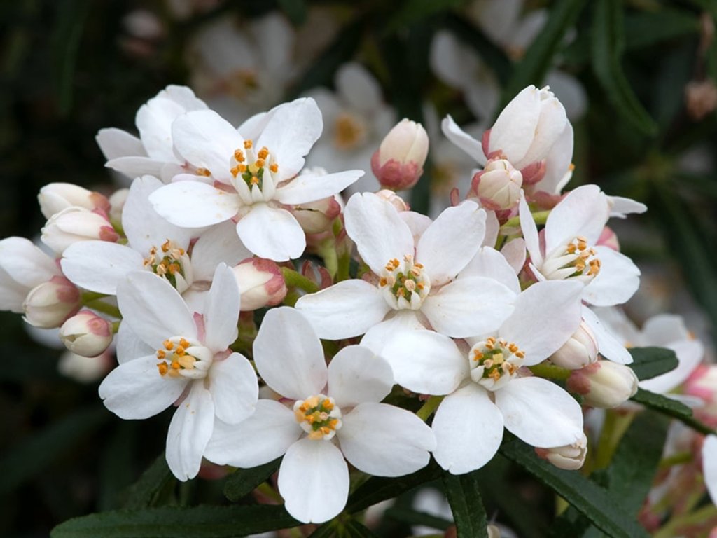 Choisya ternata 'Scented Gem' - pečlivě vybraný kultivar stálezeleného keře z čeledi routovitých, jehož původní druh pochází z horských oblastí Mexika. V přirozeném prostředí roste na slunných svazích v propustných, minerálně bohatých půdách. Kultivar 'Scented Gem' byl vyšlechtěn s důrazem na intenzitu vůně květů a kompaktní, pravidelný habitus vhodný pro menší zahrady. V dospělosti vytváří hustý, zaoblený keř vysoký přibližně 80-120 cm a podobně široký. Olistění je stálezelené, lesklé, tmavě zelené, složené z trojčetných lístků, které po promnutí uvolňují jemnou citrusovou vůni. Kvetení probíhá převážně v dubnu a květnu, v teplejších oblastech může dojít k slabému opakování kvetení koncem léta. Květy má hvězdicovité, bílé, uspořádané v hustých chocholících, jednotlivé květy dosahují průměru 3-4 cm a vynikají silnou, sladce citrusovou vůní. Rostlina je výrazně včelomilná. Uplatňuje se jako solitéra, ve skupinových výsadbách, v nízkých stálezelených lemech i v reprezentativních nádobách, kde působí kultivovaně po celý rok. Dobře se kombinuje s levandulemi, rozmarýnem, okrasnými travinami nebo jarními cibulovinami.