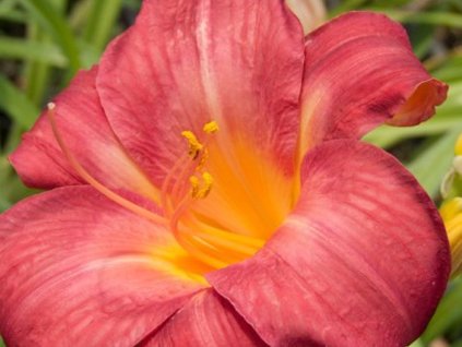 Denivka 'Diva's Choice' - optimisticky veselé jsou květy tohoto kultivaru. Žvýkačkově růžovou barvu doplňuje zářivě žlutá na okrajích zvlněných okrajů až 15cm širokých květů. Dorůstá do výšky 60cm. Nakvétá od poloviny července.