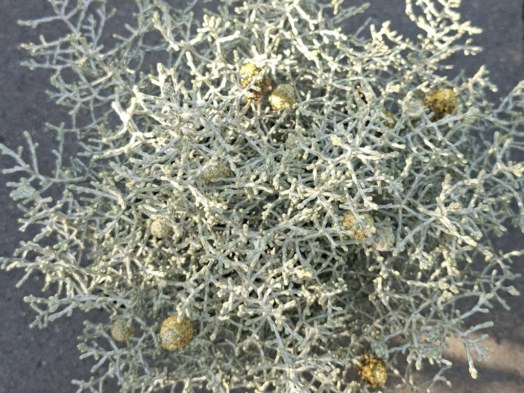 Drátovec 'Silver Ball' - známý také jako cushion bush, je atraktivní stálezelená rostlina pocházející z australských pobřežních oblastí. Nejvíce upoutá její hustý, kulovitý růst a jemné, tenké větvičky, které jsou pokryté stříbřitě šedým povlakem. Díky tomu působí celá rostlina jako nadýchaná stříbrná koule a vnáší do výsadeb moderní a elegantní vzhled. Dorůstá obvykle do výšky kolem 30 až 50 centimetrů a podobně se rozrůstá i do šířky, takže je ideální pro pěstování v nádobách, na balkonech i jako kontrastní rostlina v záhonech mezi kvetoucími druhy. V létě se na ní mohou objevit drobné krémově žluté kvítky, ale pěstuje se především pro svůj list a habitus. Je odolná vůči větru, suchu i slanému ovzduší, což z ní činí nenáročnou rostlinu vhodnou i do náročnějších podmínek. Pro zachování kompaktního tvaru je možné mladé výhony na jaře lehce seřezat. Krásně vynikne v kombinaci s vřesy, libavkami nebo okrasnými travami.