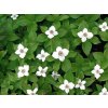Dřín kanadský - nízký plazivý dřín patřící mezi drobné dřeviny podrostového charakteru. Vyskytuje se v chladnějších oblastech Severní Ameriky, severní Evropy i Asie. Přirozeným biotopem jsou jehličnaté a smíšené lesy, rašelinné okraje a humózní lesní půdy s dostatkem vláhy a kyselou reakcí. Rostlina vytváří tenké, podzemní oddenky, pomocí nichž se pozvolna rozrůstá do souvislých, nízkých porostů. Nadzemní lodyhy dorůstají výšky 10-20 cm a nesou přesleny eliptických až vejčitých listů se svěže zeleným zbarvením. Na podzim se olistění výrazně vybarvuje do červených až vínových odstínů, čímž rostlina získává další okrasnou hodnotu. Kvetení probíhá v květnu až červnu. Vlastní květy jsou drobné a nenápadné, avšak obklopené čtyřmi nápadnými bílými listeny, které vytvářejí efekt jednoduchého květu o průměru přibližně 3-5 cm. V létě dozrávají kulaté, jasně červené plody uspořádané v hlávkách. Bývají významným zdrojem potravy pro lesní ptactvo. Dřín je včelomilný a ekologicky cenný. V zahradách se uplatňuje jako půdopokryvná dřevina do lesních a přírodních kompozic, kde se přirozeně kombinuje s kapradinami, jarními cibulovinami, pěnišníky, pierisy nebo jinými kyselomilnými rostlinami.