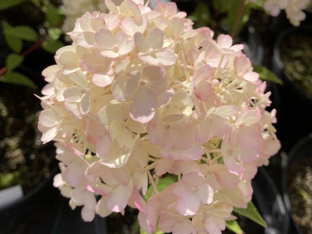 Hortenzie latnatá 'Petite Flori' - patří ke kompaktním kultivarům vhodným do menších zahrad i nádob. Vytváří hustý, jemně zaoblený keř vysoký přibližně 0,8 m a široký kolem 0,6 m, s pevnými, dobře vyzrávajícími výhony. Listy jsou vejčité, sytě zelené a během sezóny tvoří svěží pozadí pro nápadná květenství. Již koncem června se objevují početná vzpřímená lata nejprve bílé barvy, která se v průběhu léta zlehka zbarvují do růžových tónů a na konci kvetení dozrávají do tmavě červené. Na jednom keři se tak po dobu léta a podzimu střídají různé odstíny, což podporuje živý, proměnlivý vzhled výsadby. Sterilní květy v horní části lat se uplatňují i ve váze, kde po částečném zaschnutí dobře drží tvar. Kultivar nachází uplatnění v popředí trvalkových záhonů, u teras, chodníků nebo v nízkých živých lemech, vhodný je také k pěstování v nádobách na světlých balkonech. V kombinacích se osvědčuje s jemnými okrasnými travami, nižšími rozchodníky, šantami nebo růžemi, které zvýrazňují proměnlivou barevnost květů.