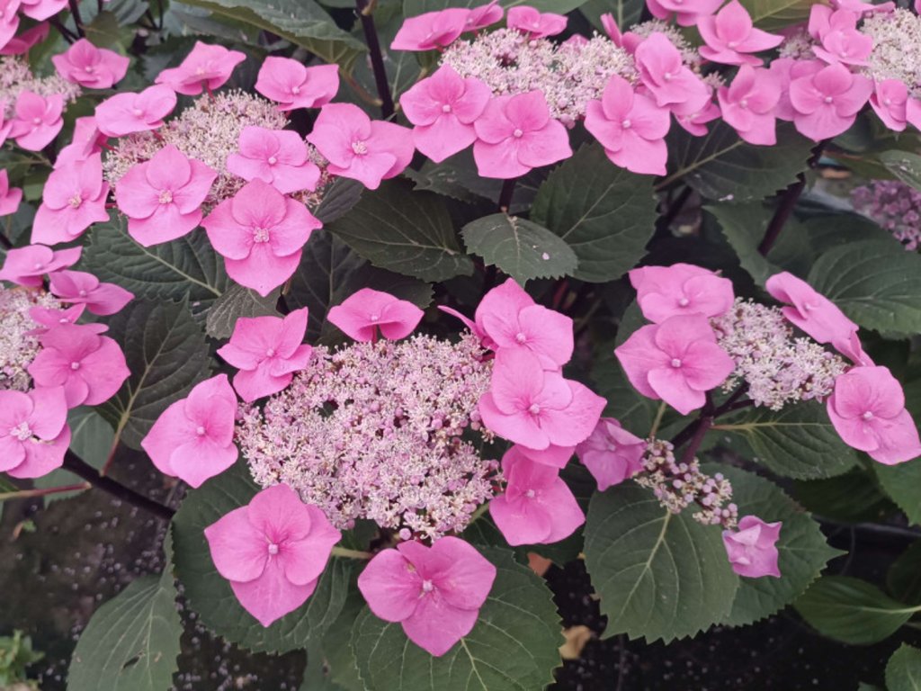 Pěstování: Stanoviště by mělo být s rozptýleným světlem, ranním sluncem a lehkým odpoledním stínem, chráněném před prudkým větrem a jarními mrazíky. Půda má být hlubší, humózní, stále mírně vlhká, s dobrou drenáží, aby kořeny nestály ve vodě. Optimální je mírně kyselé až neutrální, v těžších půdách prospívá přidání rašeliny a kompostu, v lehkých půdách zase mulč z listovky nebo kůry, který omezuje výpar a udržuje vláhu. Hortenzie patří mezi mělkokořenné keře, proto citlivě reagují na přeschnutí a v horkých obdobích potřebují vydatnější zálivku, zejména v nádobách. Hnojení se volí vyváženým hnojivem pro kvetoucí dřeviny s nižším obsahem dusíku, od dubna do července, aby výhony do podzimu dobře vyzrály. Řez se u velkolistých hortenzií provádí s ohledem na to, že většina odrůd kvete na loňském dřevě, brzy na jaře se odstraňují zmrzlé a poškozené výhony a odkvetlá květenství se zkracují těsně nad silným pupenem. V chladnějších oblastech pomáhá zimní ochrana kořenového prostoru silnější vrstvou mulče a u mladých rostlin i přikrytí nadzemní části prodyšným materiálem. Vhodný rozestup při výsadbě bývá 0,8–1 m, u větších kultivarů až 1,5 m, aby se keř mohl volně rozvinout. Hortenzie obecně snášejí teploty do −20 °C, ve vyšších polohách však prospívají na chráněných místech v blízkosti zdí nebo živých plotů, kde je méně výkyvů teploty a květní pupeny lépe přezimují.