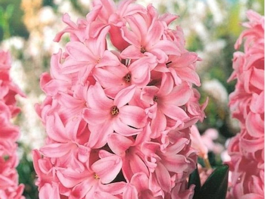 Hyacint 'Fondant' - nádherně zbarvený kultivar oblíbeného hyacintu. Vzpřímeně rostoucí klasy jsou hustě pokryté typickými, hvězdicovitými květy v pastelově růžových barvách. Střed okvětního plátku má intenzivní barvu se světlejšími okraji. Květy jsou příjemně aromatické. Je ideálním doplňkem do záhonu, do terasových nádob nebo do okenních truhlíků.