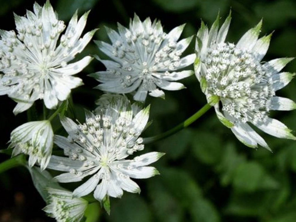Jarmanka větší 'Shaggy’ - elegantní trvalka, která vyniká svými výraznými bílými květy s nazelenalými čárkovanými listeny, které jí dávají „chlupatý“ vzhled. Dorůstá do výšky cca 60‑90 cm a šířka 35‑60 cm. Kvete od června do srpna, někdy i v září když jsou příznivé podmínky. Kultivar ‘Shaggy’ je oblíbený u včel, kvůli bohatým okolíkům nektaru a pylu. Excelentní do stinných či polostinných záhonů, pod stromy i keřových lemů. Vhodná pro řez a suché dekorace.