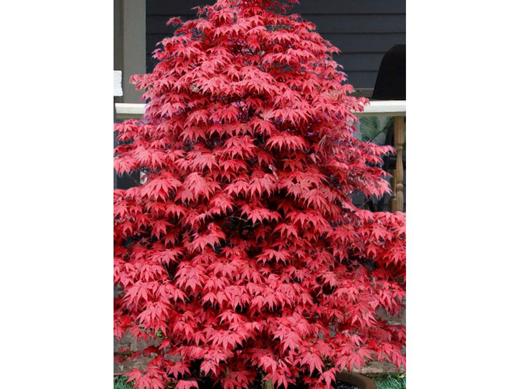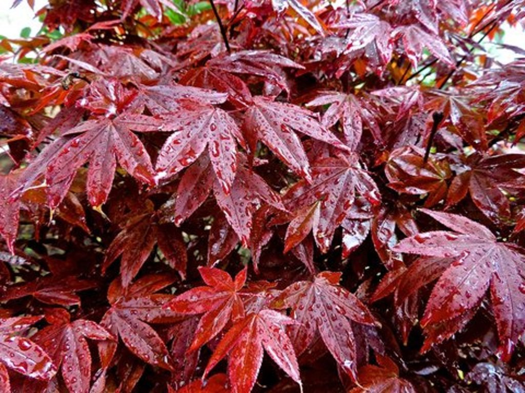 Javor dlanitolistý 'Rhode Island Red' - krásný, kompaktní a intenzivně vybarvený kultivar japonského javoru, který vyniká zejména jasnými červenými tóny při jarním rašení a stabilní sytou barvou po velkou část sezóny. Patří mezi menší, pomalu rostoucí odrůdy vhodné i do menších zahrad, předzahrádek nebo do nádob. Roste jako hustý, zaoblený keř nebo malý stromek, obvykle 1,5 až 2 metry vysoký, jen výjimečně více. Jeho habitus je přirozeně kompaktní, jemně rozložitý a dobře si drží tvar bez potřeby výrazného řezu. Listy jsou pěti- až sedmilaločné, středně hluboce dělené. Na jaře vyrážejí v zářivých odstínech jasně červené až karmínové, často velmi intenzivní. V létě barva tmavne do hluboké vínové až purpurové, která se drží lépe než u mnoha jiných červenolistých javorů. Na podzim se listy znovu rozzáří ohnivě červenou až šarlatovou, díky čemuž strom poskytuje krásné sezónní proměny. Je mrazuvzdorný zhruba do –20 °C, mladé rostliny však ocení zimní mulč a chráněné stanoviště. Díky své velikosti a intenzivním barvám je vhodný jako solitéra do menších zahrad, předzahrádek, japonských výsadeb, k jezírkům nebo do dekorativních nádob. Velmi dobře kontrastuje se zelenolistými dřevinami, jehličnany či světle zbarvenými trvalkami.