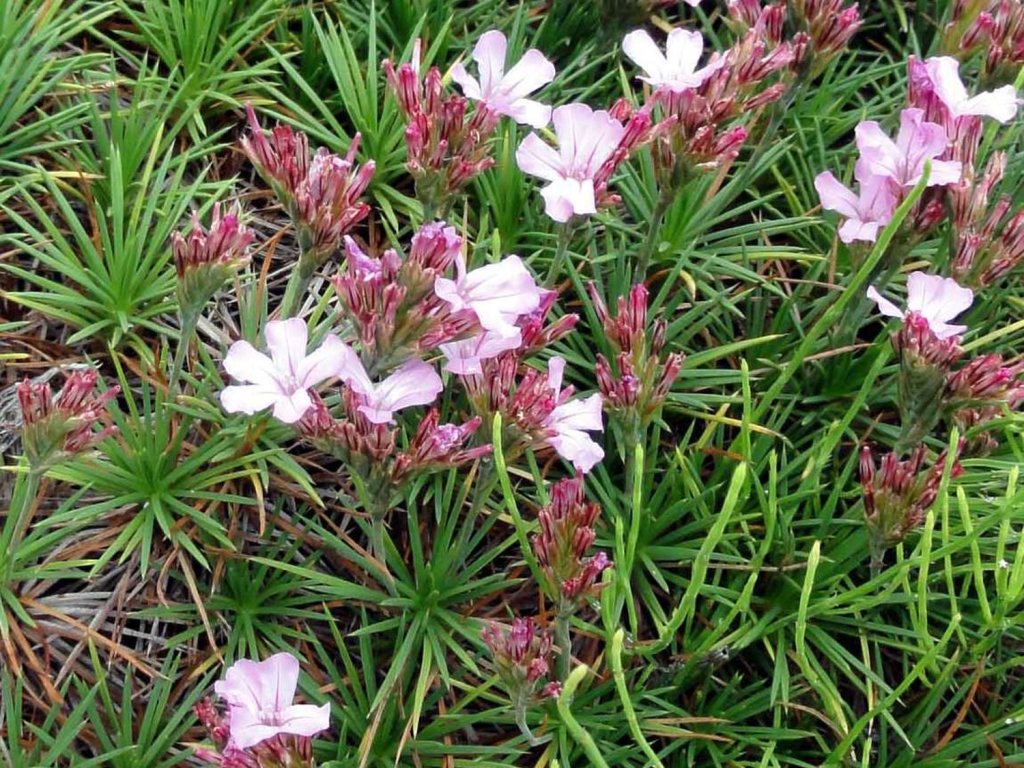 Ježatec plevnatý - stálezelená bylina známá pod českým názvem ježatec nebo ježourek. Dosahuje výšky přibližně 10–15 cm a šířky 30–50 cm díky polštářovitému, kompaktnímu růstu s hustými, tuhými jehlicovitými listy, které vytvářejí texturovaný zelený koberec. Listy jsou úzké, špičaté a pevné, což rostlině propůjčuje charakter skalničky s jasným siluetním rysem. Květy se objevují od června do července v krátkých klasovitých květenstvích s růžovými kalichy a jemnými korunními lístky, které kontrastují se stálezeleným listovím a přitahují drobné opylovače. Tento druh pochází z kamenitých, suchých stanovišť Kavkazu a Malé Asie a dobře se adaptuje plnému slunci, což z něj činí vhodnou volbu do skalek či suchých, slunečných partií zahrady. Rostlina je mrazuvzdorná a odolná vůči nízkým teplotám. Využití v zahradě je zejména jako půdopokryvná skalnička nebo texturový prvek v kompozicích s jinými suchomilnými trvalkami.