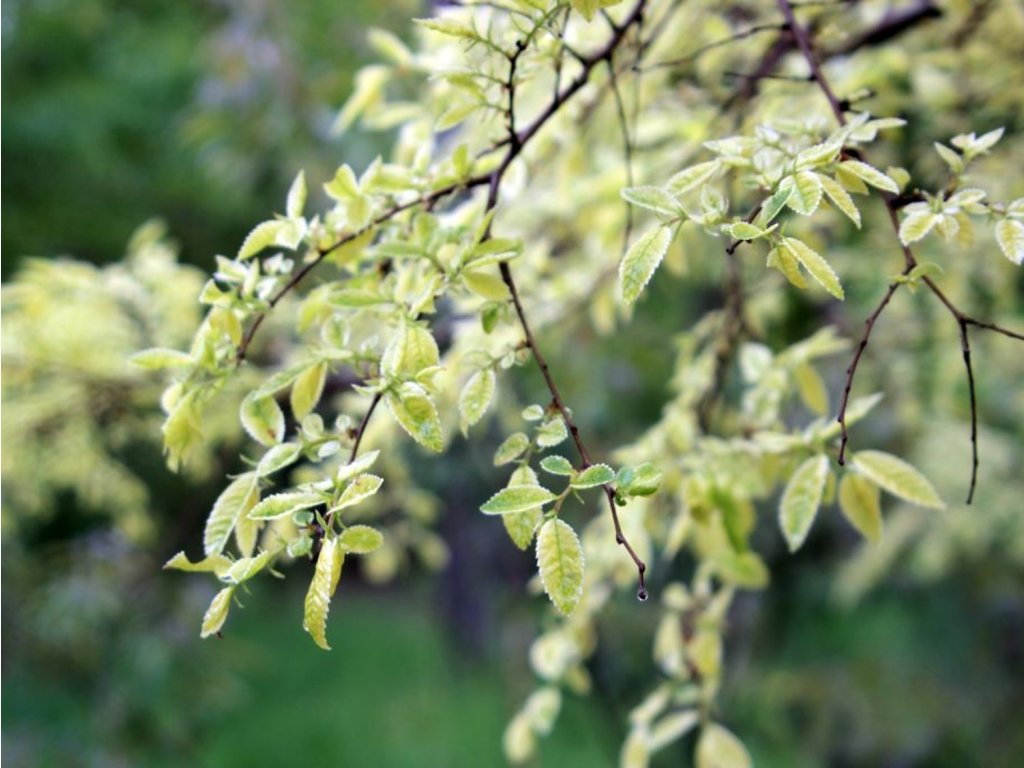 Jilm čínský 'Geisha' - překrásný opadavý keř nebo menší stromek s výraznými obloukovitě přepadavými větvemi, které mu dodávají eleganci a šarm. S dorůstající výškou 3-4 m a šířkou 4-5 m představuje ideální doplněk sadovnických výsadeb. Jeho pomalý růst a menší, jemně ozubené listy v tmavě zeleném odstínu s jemným bílým lemem dodávají tomuto keři dekorativní charakter. Jilm je zdobený drobnými, svěže zelenými listy s jemným bílým lemujícím okrajem, představuje skvělou možnost pro pěstování v nádobách a korytech. Nejenže přináší krásu a jemnost, ale i praktičnost jako ideální dominantu do skalek nebo doplněk do zahradních výsadeb. Vzhledem k jeho odolnosti, křehké kráse a snadnému tvarování je ideálním materiálem pro tvorbu bonsaí.
