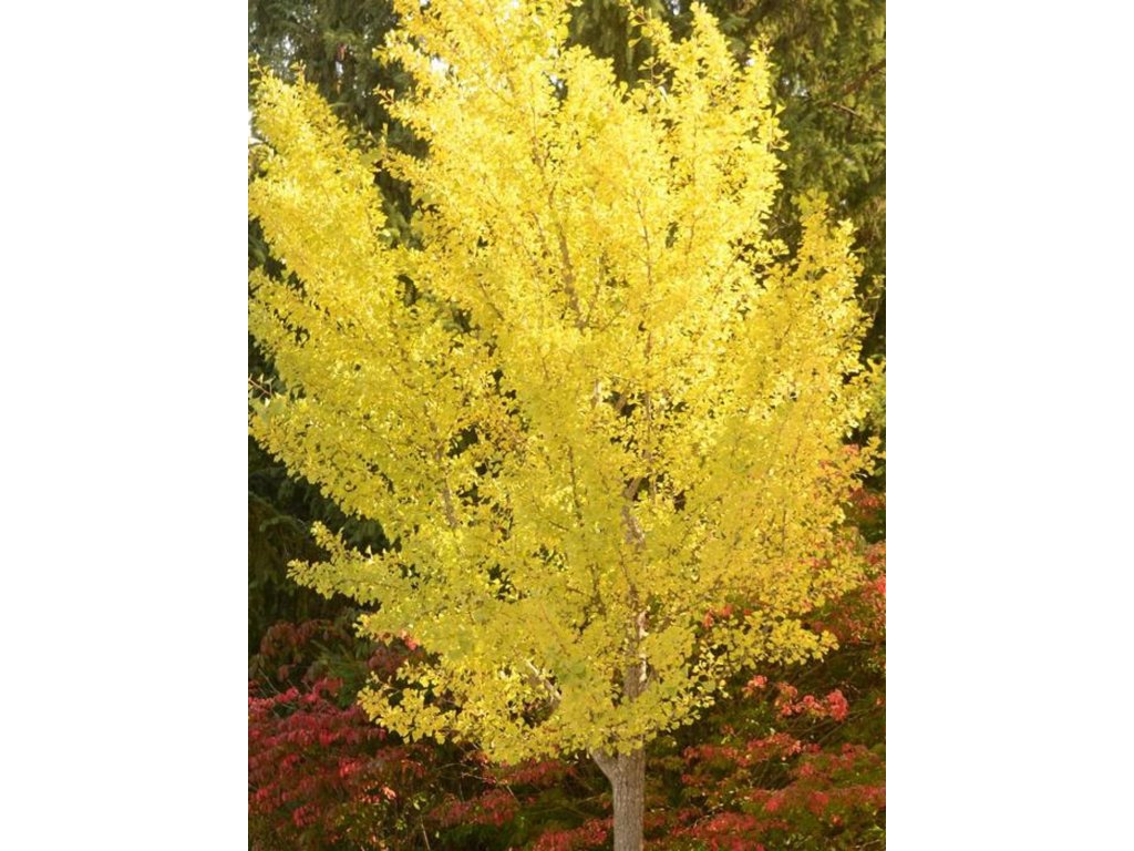 Jinak dvoulaločný 'Autumn Gold' - strom dorůstající do výšky okolo 15 - 25 m a šířky zhruba 15 m. Celkový růst je pomalý, obzvláště v mládí. Zpočátku má úzce pyramidální tvar, později pak široce pyramidální habitus. Hlavní kmen má roste rovně. Listy jsou vějířovité a vyrůstají ve svazečcích po 3 - 5. Listy mají standardně zelené vybarvení a s příchodem podzimních měsíců se vybarvení mění na zlatožluté, velmi výrazné. Rostlina celkově působí dekorativně, je to tedy ideální solitérní strom. Jedná se o samčí kultivar.