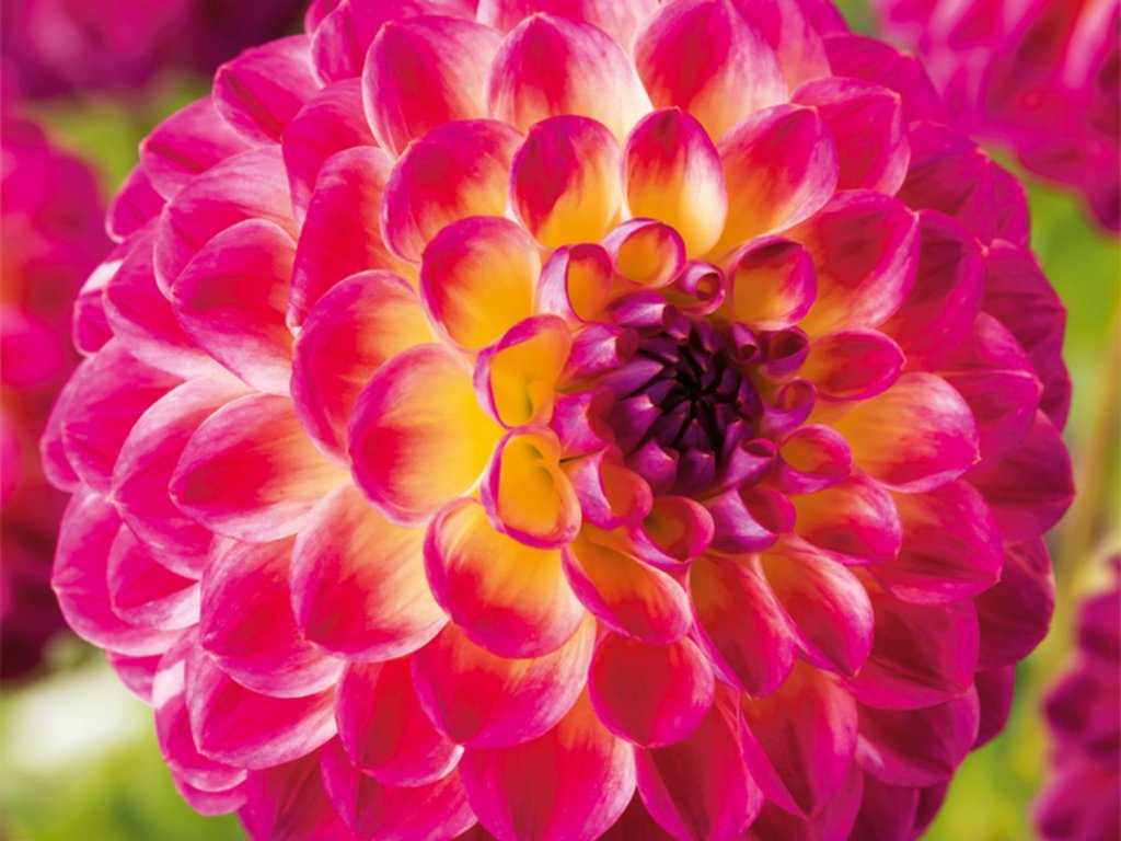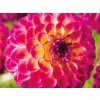 Jiřina 'Hapet Daydream' - vychází z druhů původem z Mexika a Střední Ameriky a v Evropě se dlouhodobě šlechtí pro tvar květu, barvu i pevné stonky. Kultivar 'Hapet Daydream' pochází ze šlechtění nizozemské skupiny Hapet a v nabídce se objevuje jako novinka kolem roku 2012. V obchodu bývá řazen mezi kulovité až pomponkové jiřiny, protože plně dvojité úbory tvoří těsně stočené jazykovité květy skládající se do pravidelné koule. Květy mají obvykle 6–10 cm a zbarvení kombinuje žlutý základ s lesklou růžovou až vínově růžovou, místy se objevuje světlejší mramorování nebo přechod do krémové. Na jedné rostlině se často střídají odstíny podle vyzrálosti květu, což dává porostu živý, ale stále harmonický výraz. Kvetení probíhá od července do října, při teplém podzimu až do prvních mrazů. Rostliny dorůstají přibližně 85–110 cm a 40–60 cm do šířky, listy jsou zpeřené, středně až tmavě zelené a stonky bývají pevné. Plný květ poskytuje opylovačům méně pylu a nektaru než jednoduché jiřiny, zato je stabilní v řezu a v kyticích vytváří pravidelnou „plástvovou“ strukturu. V záhonové kompozici funguje jako výrazný bod mezi okrasnými travami, sporýši, třapatkami a šalvějemi, kde kulovitý květ kontrastuje s jemným olistěním a žlutý střed prosvětlí i tmavší výsadby.