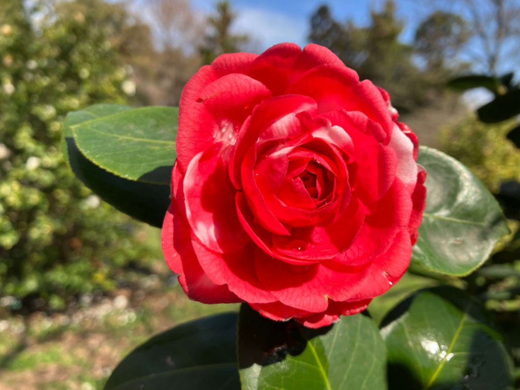 Kamélie japonská 'Giordano Santorelli' - historický kultivar kamélie japonské s výraznými červenými květy doplněnými bílými skvrnami, oblíbený pro svou jedinečnou dvoubarevnost a bohaté kvetení, s formálně dvojitými květy. Kultivar dorůstá do výšky 2,5 - 3,5 metrů. Kvete rozsáhle od zimy do jara (od ledna až do dubna), díky této zajímavosti budou jedni z prvních květů na Vaší zahradě. Vynikne jako solitér i ve výsadbě s dalšími keři. Krásnou kombinaci tvoří například s rhododendrony, čemeřicemi nebo kapradinami.