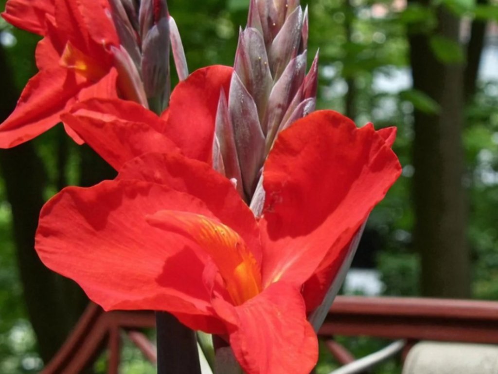 Kana 'Brilliant' - zajímavá rostlina, která vytváří výrazné sytě červené květy umístěné ve vzpřímených klasech nad štíhlými, jasně zelenými listy, které jsou dekorativní i bez květů. Výška rostliny se obvykle pohybuje mezi 90 a 120 cm se šířkou kolem 30–60 cm, což jí dává výraznou strukturu v letním záhoně i v nádobách na terase či balkonu. Kultivar kvete od července do pozdního léta či prvních podzimních měsíců, kontrastuje se zelení okolních rostlin a doplňuje kombinace s letničkami a nízkými trvalkami. Je ceněná pro svůj exotický efekt a vysoký dekorativní potenciál.