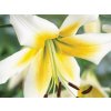 Lilie 'Mister Pistache' - orientální hybridní lilie. Patří do skupiny orienpet (OT) hybridů, tedy kříženců orientálních a trubkovitých lilií. Šlechtění této skupiny navazuje na východoasijské druhy, zejména Lilium auratum a Lilium speciosum, a k jejich vůni přidává robustnější, méně lámavou stavbu. Z šupinaté cibule vyrůstají na jaře přímé, hustě olistěné lodyhy, obvykle 110–130 cm vysoké, v úrodnější půdě i vyšší. Listy jsou úzké až kopinaté, leskle zelené a v pravidelných přeslenech, takže rostlina působí upraveně i před květem. Trs se v dospělosti rozšiřuje přibližně na 35–45 cm. V červenci až srpnu se na vrcholech postupně otevírá zpravidla 3–6 velkých květů o průměru zhruba 15–20 cm, většinou směřujících mírně dolů. Okvětí je bílé, v hrdle přechází do citronově žlutého tónu a u báze se může objevit jemný zelenkavý nádech. Večerní vůně je kořenitě sladká a v teplém vzduchu se šíří do okolí jako tichý signál léta. V zahradě se uplatní jako solitéra i ve skupině 3–5 cibulí, v pozadí trvalkových záhonů, u plotu nebo před keři s lehkou korunou. Výborně ladí s okrasnými travami, šantou, šalvějí nebo denivkami, které překryjí patu stonků a zvýrazní světlý tón květů. Pevné stvoly jsou vhodné i k řezu, ve váze se poupata rozvíjejí postupně. Prašníky nesou pyl barvící textil, proto se u řezaných květů často odstraňují.