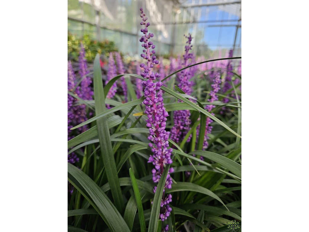 Liriope 'Royal Purple' - elegantní kultivar, který vytváří husté trsy. Dorůstá výšky a šířky okolo 50cm. Jedná se o stále zelenou trvalku s jasně zelenými listy připomínající listy okrasné trávy. Kvete od srpna až do října. Květy se objevují v bohatých špičkách v sytě fialových až purpurových barvách, které často následují dekorativní černé bobule. Vyjímat se bude v nádobách, cestičky u záhonků nebo jako podrost pod stromy či keře. Krásnou kombinaci tvoří například s levandulí, žlutozelená Hakonechloa nebo šantou.