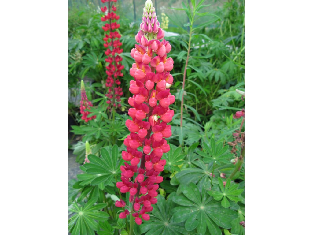 Lupina 'My Castle' - atraktivní trvalka, která zaujme svými zářivými, sytě červenými květy uspořádanými v hustých, vzpřímených hroznech. Tato odrůda vlčího bobu dorůstá výšky přibližně 80–100 cm a šířky kolem 50 cm, což z ní činí výrazný středobod záhonu nebo perfektní doplněk smíšených výsadeb. Květy se objevují na pevných stoncích v průběhu června a přitahují opylovače, jako jsou včely a motýli. Listy jsou složené do vějíře a mají zelenou barvu. Lupina je velmi toxická a vysazují se spíše do zahrad přírodního vzhledu ale jsou vhodné i do trvalkového záhonu. Rostliny lze řezat do vázy nebo na květinovou vazbu.