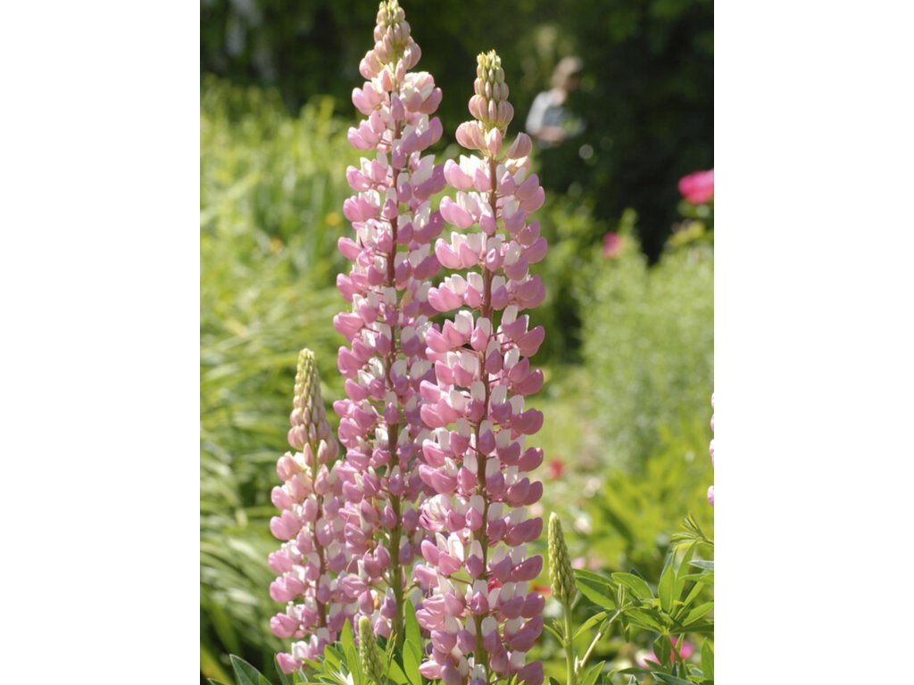 Lupina mnoholistá 'The Chatelaine' - dekorativní trvalka, která vytváří vyšší kompaktní keřík dorůstající do výšky 90 - 120 cm. Bohaté květy uspořádané v hustých klasech se tyčí na vysokých stoncích většinou od června do srpna a mají jemnou staro - růžovou barvu s bílým vrcholem. Díky své příjemné vůni jsou lákadlem pro motýly, čmeláky a včely. Listy jsou středně zelené, podlouhlé a narůstají v bohatých růžicích. Upoutá pozornost v jakékoliv skupinové výsadbě a skvěle se hodí do přírodně orientovaných zahrad. Je vhodná i pro pěstování v nádobě.