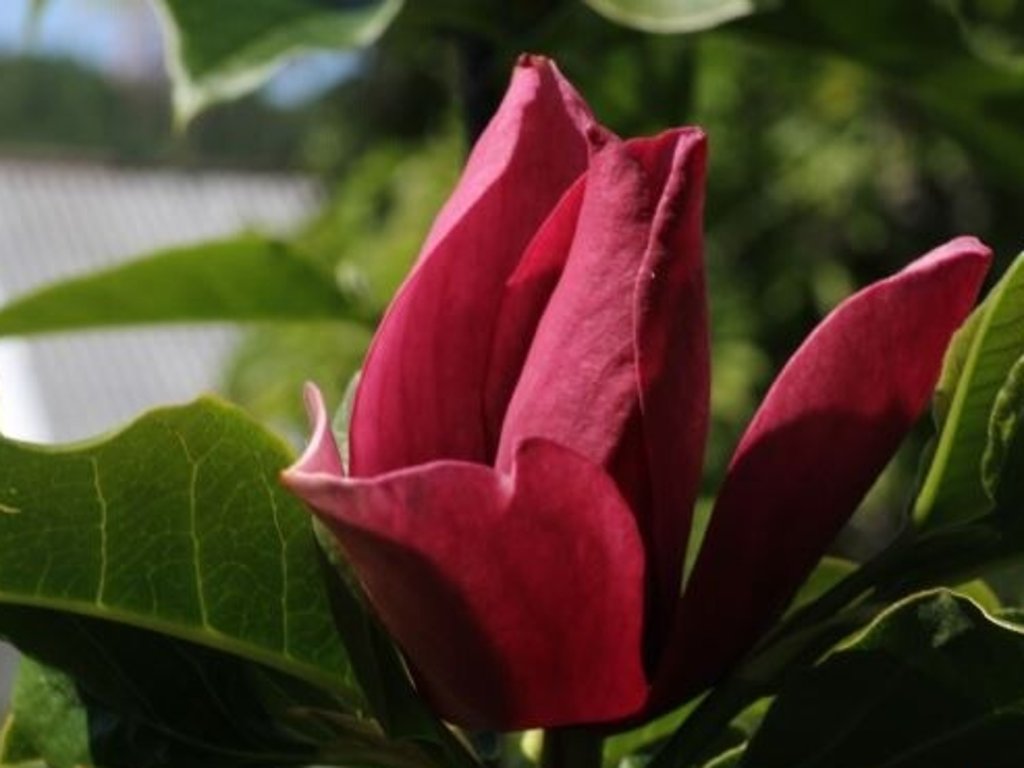 Magnolie 'Olav Kalleberg' - okouzlující magnolie, která je známá pro své velké a atraktivní květy. Jedná se o hybrid s původem ve šlechtění Michaela Gottschalka křížením Magnolia 'Black Tulip' × Magnolia liliiflora 'Holland Red'. Kultivar se osvědčil v chladnějších oblastech severní Evropy a do nabídky školek se dostal jako spolehlivě kvetoucí magnolie s kompaktnějším růstem. Vytváří hustší, vzpřímený keř až menší strom s pevnými výhony. Po 10 letech mívá přibližně 2,5 m na výšku a v podmínkách ČR v dospělosti obvykle dorůstá okolo 2,5–3,5 m × 2–3 m. Na bezlistých větvích se v dubnu až květnu otevírají pohárovité květy 15–20 cm s více okvětními lístky, zvenku tmavě purpurové až vínově růžové, uvnitř často světlejší. Vůně bývá jemná a nese stopu magnolie liliokvěté. U dobře zakořeněných rostlin se může objevit slabší dokvétání v červenci až srpnu na nových výhonech. Listy raší po hlavní vlně kvetení, jsou široce vejčité, lesklé a tmavě zelené, na podzim žloutnou. Na podzim se někdy vyvíjejí válcovitá souplodí se sytě červenými semeny, která přidají drobný akcent. V zahradní kompozici dobře vyniká u tmavého jehličí, mezi stálezelenými pěnišníky a vřesy v kyselé půdě nebo vedle bílých a modrých jarních cibulovin. Časné kvetení přináší pyl ranému hmyzu a větve s nabobtnalými poupaty lze využít i do vázy.
