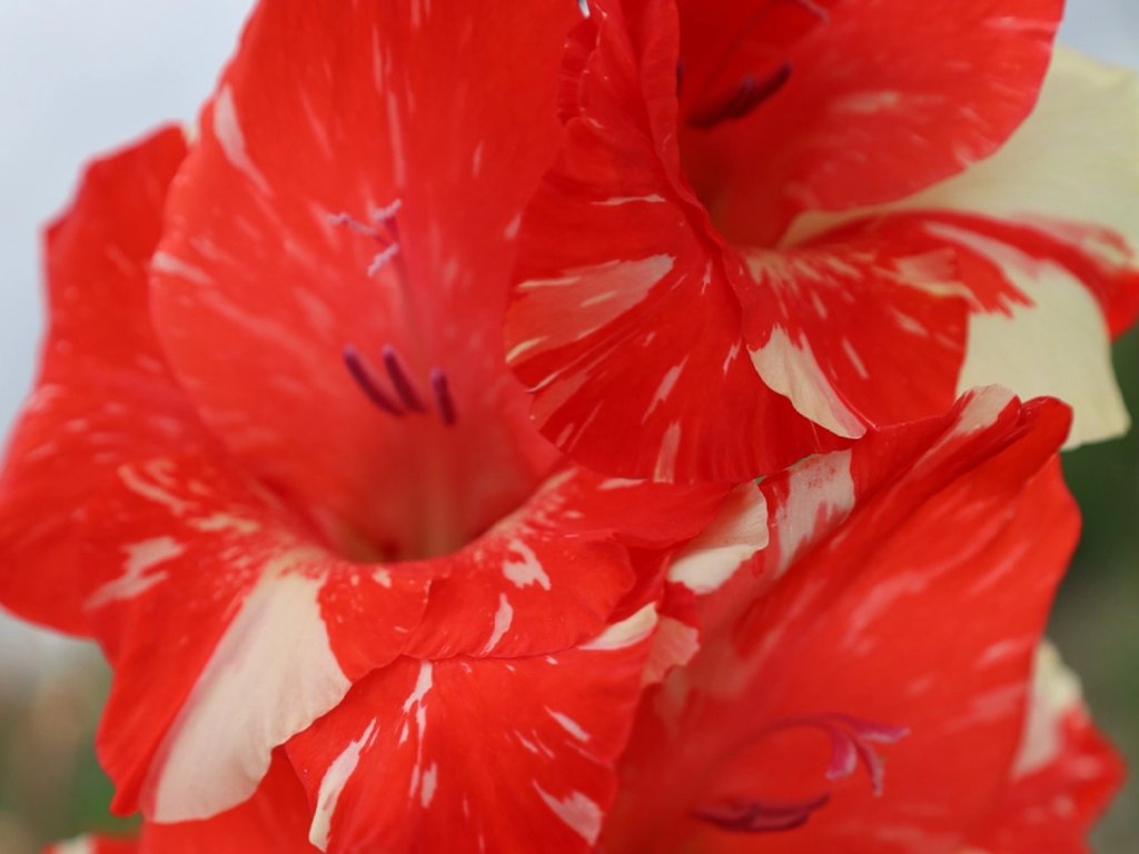 Mečík 'Koi Pursuit' - nádherná rostlina, která patří mezi zahradní hybridy rodu Gladiolus z čeledi kosatcovitých Iridaceae. Rod Gladiolus je druhově nejbohatší v jižní Africe a částečně ve Středomoří, u nás se velkokvěté kultivary pěstují z hlíz jako letní okrasné rostliny. 'Koi Pursuit' je ceněn pro takzvaný „broken“ efekt, kdy se na bílém podkladu objevují nepravidelné karmínové šmouhy a žíhání, takže každý květ i celý klas působí jedinečně. Listy jsou úzké, mečovité, sytě zelené, na pohled čisté a architektonické. Květní stvol bývá pevný, vysoký přibližně 100–130 cm, šířka trsu se pohybuje kolem 10–15 cm. Květenství je obvykle dvouřadé a květy se otevírají postupně odspodu nahoru, což prodlužuje okrasný efekt i využití pro řez. Pro vazbu se stvoly řežou ve fázi otevření prvního až druhého květu, zbytek se rozvine ve váze. Vůně je zpravidla nevýrazná, přesto květy často navštěvuje hmyz. V kompozici dobře funguje ve skupině po 5–9 hlízách, mezi třapatkami, šantami, šalvějemi a okrasnými travami, kde vytváří svislou linku a výrazný barevný detail. Rostlina není určená ke konzumaci.