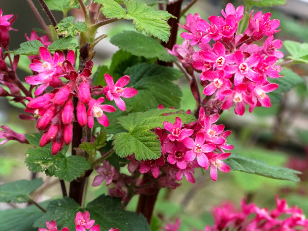 Meruzalka krvavá 'Red Bross' - atraktivní jarně kvetoucí keř, který vyniká sytě červenými květy, bohatým kvetením a nenáročností. Roste jako středně velký, vzpřímený až mírně rozložitý keř, obvykle 1,5 až 2,5 metru vysoký a podobně široký. Habitus je přirozený, vzdušný a dobře větvený. Listy jsou trojlaločné, středně zelené, po promnutí aromatické, na podzim se zbarvují do žlutých odstínů a následně opadávají. Květy se objevují v dubnu až květnu, často ještě před úplným olistěním. Jsou uspořádané v převislých hroznech a mají jasně až tmavě červenou barvu. Kvetení je bohaté a velmi výrazné, keř je v tomto období silným barevným akcentem a láká množství včel a další opylovače. Po odkvětu se mohou vytvořit drobné tmavé bobule, které nejsou určeny ke konzumaci, ale působí dekorativně a slouží jako potrava pro ptactvo. Je plně mrazuvzdorný, odolný vůči chorobám a vhodný i do městského prostředí. Hodí se jako solitéra, do smíšených keřových skupin, venkovských a přírodních zahrad, parků i větších předzahrádek. Velmi pěkně se kombinuje s dalšími jarně kvetoucími keři, jako jsou zlatice, tavolníky nebo okrasné třešně.