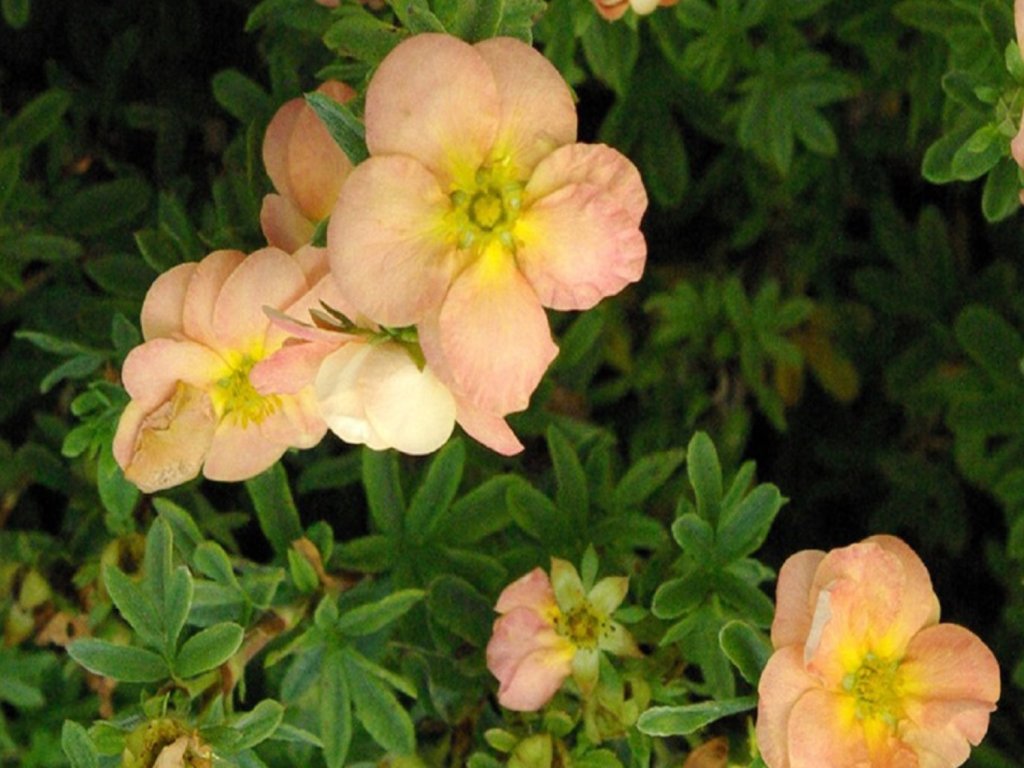 Mochna křovitá 'Bella Apple'® - mimořádně půvabný a jemně působící kultivar, který vytváří kompaktní, nízký keřík dorůstající přibližně do výšky 50–60 cm a šířky kolem 60–80 cm. Vyznačuje se bohatým a dlouhotrvajícím kvetením, které začíná v červnu a pokračuje až do září. Květy mají atraktivní meruňkově až lososově zbarvené okvětní plátky s výrazným žlutým středem tvořeným hustými, strukturovanými tyčinkami, což jim dodává velmi dekorativní vzhled. Díky neustálému nasazování nových květů je rostlina ozdobná po celé léto a současně představuje cenný zdroj potravy pro včely a další opylovače. Díky svému nízkému a hustému růstu se skvěle hodí jako půdopokryvná rostlina, k lemování záhonů, do skalek i do nádob na balkon či terasu. Velmi efektně působí v kombinaci s rostlinami modrých odstínů, například s perovskií, šalvějí nebo nepetou, které zvýrazňují její teplé zbarvení květů.