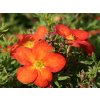 Mochna křovitá 'Marian Red Robin' - syn. 'Marrob'. Patří mezi nízké opadavé keře z čeledi růžovitých, odvozené od druhu rozšířeného v chladnějších oblastech Evropy, Asie i Severní Ameriky na slunných, spíše sušších stanovištích. V našich podmínkách zahrad vytváří hustý, polokulovitý až mírně rozkladitý keř vysoký přibližně 0,5–0,7 m a široký kolem 0,8–1 m, u starších rostlin někdy o něco více. Výhony jsou jemné, bohatě větvené a nesou drobné lichozpeřené listy tvořené úzkými lístky s tmavě až trávově zelenou barvou. Olistění působí jemně a přitom vytváří souvislý porost, který chrání půdu před přehříváním i zaplevelením. Hlavní ozdobou kultivaru 'Marian Red Robin' je barva květů, které přecházejí od června do září, někdy i déle, se na mladých výhonech objevují jednoduché pětičetné květy o průměru kolem 2,5–3 cm v odstínech cihlově červené až červenooranžové s výrazným žlutým středem. Na rubu mohou být plátky světleji žluté, při delším oslunění květy často přecházejí do teplejší oranžové. Kvetení probíhá ve vlnách po celé léto, na keři bývají současně poupata, čerstvě rozvité květy i odkvetlé zbytky, takže porost působí živě po dlouhou část sezony. Květy jsou navštěvovány včelami a dalšími opylovači, kterým poskytují nektar a pyl v době, kdy část jarních druhů již dokvétá. Plody v podobě drobných nažek nemají význam pro kuchyňské využití, mochna se pěstuje jako okrasná dřevina. Odrůda se uplatní na svazích, v popředí keřových výsadeb, v nízkých živých plotech i ve skalkách, kde vytváří kontrast k žlutokvetoucím kultivarům nebo k bílým mochnám, a dobře doprovází levandule, šantu, rozchodníky i nižší okrasné trávy.