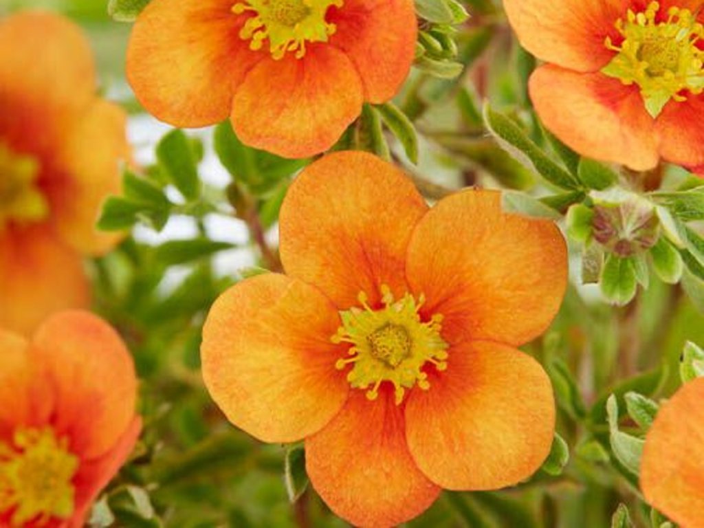 Mochna křovitá 'Orange Star' - krásný, kompaktní a velmi mrazuvzdorný kultivar, který dorůstá do výšky i šířky přibližně 80–100 cm. Keř má hustý, polokulovitý až kompaktní habitus a dlouhodobě si udržuje pěkný tvar. Květy jsou jednoduché o průměru kolem 3 cm a jejich barva se pohybuje od sytě oranžové po žlutooranžovou, čímž vytvářejí živý a zářivý efekt. Nakvétají od začátku léta až téměř do podzimu, přičemž lákají motýly a včely, čímž podporují biodiverzitu zahrady. Rostlina je nenáročná a skvěle se hodí do nížin i vyšších poloh, pokud má k dispozici slunné stanoviště a dobře propustnou půdu. Kultivar je ideální pro masové výsadby i kombinace s trvalkami, například levandulí, nepétou, šalvějí, nebo s okrasnými trávami, které zvýrazní intenzitu květů. Vynikne také v nádobách na terase či balkónech, kde poskytuje dlouhé a efektivní kvetení.