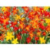 Montbrécie mix - představuje pestrou směs hlíznatých trvalek s elegantními mečovitými listy sytě zelené barvy, které vytvářejí vzpřímené až lehce převislé trsy. Během léta z nich vyrůstají štíhlé, obloukovitě prohnuté květní stonky nesoucí řadu nálevkovitých květů v živých odstínech červené, oranžové a žluté často s jemnými barevnými přechody. Rostliny dorůstají přibližně 60 až 100 cm výšky a kvetou od července do září, kdy přinášejí do zahrady výrazný barevný akcent a exotický charakter. Směs různých barev působí přirozeně a dynamicky, což z ní činí atraktivní prvek letních a trvalkových záhonů. Dobře se uplatní ve skupinových výsadbách, v kombinaci s okrasnými travami nebo trvalkami s jemnou strukturou, využívá se také k řezu, protože květy jsou dekorativní i ve váze. Hodí se rovněž do větších nádob, kde vynikne její architektonický habitus.