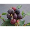 Muchovník olšolistý 'Edelweiss' - evropský kultivar známý většími, čistě bílými květními latami a vyrovnanou plodností. Druh pochází z teplých svahů a skalnatých strání střední a jižní Evropy, často na vápencích a dolomitech. ‘Edelweiss’ dorůstá přibližně 2–3 m výšky a šířky, habitus je vzpřímený s lehce prosvětlenou korunou bez trnů. Listy při rašení stříbřitě plstnaté přecházejí do tmavě zelené a na podzim se barví do žlutých, oranžových a červených tónů. V dubnu až květnu se objevují bohaté, vzpřímené květní laty složené z hvězdicovitých bílých květů. Po odkvětu následují kulaté malvice 10–14 mm, zpočátku červené, při zrání modročerné s jemným ojíněním. Chuť je sladká s lehkou navinulostí, plody se hodí k přímé konzumaci, do pečení, džemů, sirupů a ke zmrazování. V kompozici působí jako spolehlivý okrasně jedlý keř do menších a středních zahrad, ve volných plotech přináší jarní květ a letní úrodu.