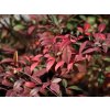 Nandina domácí 'Red Dragon' PBR - syn. nebeský bambus. Tvoří kompaktní, zaoblený, stálezelený keř, dorůstající do výšky 0,5 m a šířky 0,6 m. Kopinaté listy mají v průběhu sezóny zelenou barvu, na podzim jsou až ohnivě červené s oranžovým prokreslením. Vyniká bohatými shluky lakovaných bobulí, které se objevují zhruba v polovině léta. Díky svému elegantnímu vzhledu a přizpůsobivosti je ideální pro pěstování v nádobách, na záhonech i jako součást moderních zahradních kompozic.