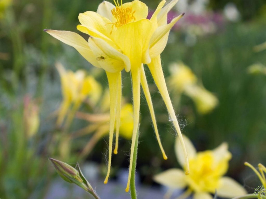 Orlíček velkokvětý 'Maxi' - tato krásná trvalka má nepravidelné okvětní lístky, které se směrem do středu mění z lehké žluté do výraznější žluté barvy. Uprostřed květu jsou výrazně žluté tyčinky. Listy jsou menší a pravidelné. Dorůstá do výšky 60 cm. Nakvétá od května do června. Lze ji pěstovat v trvalkovém záhonu nebo na okraji skalek. Pěkně vypadá také v nádobách.