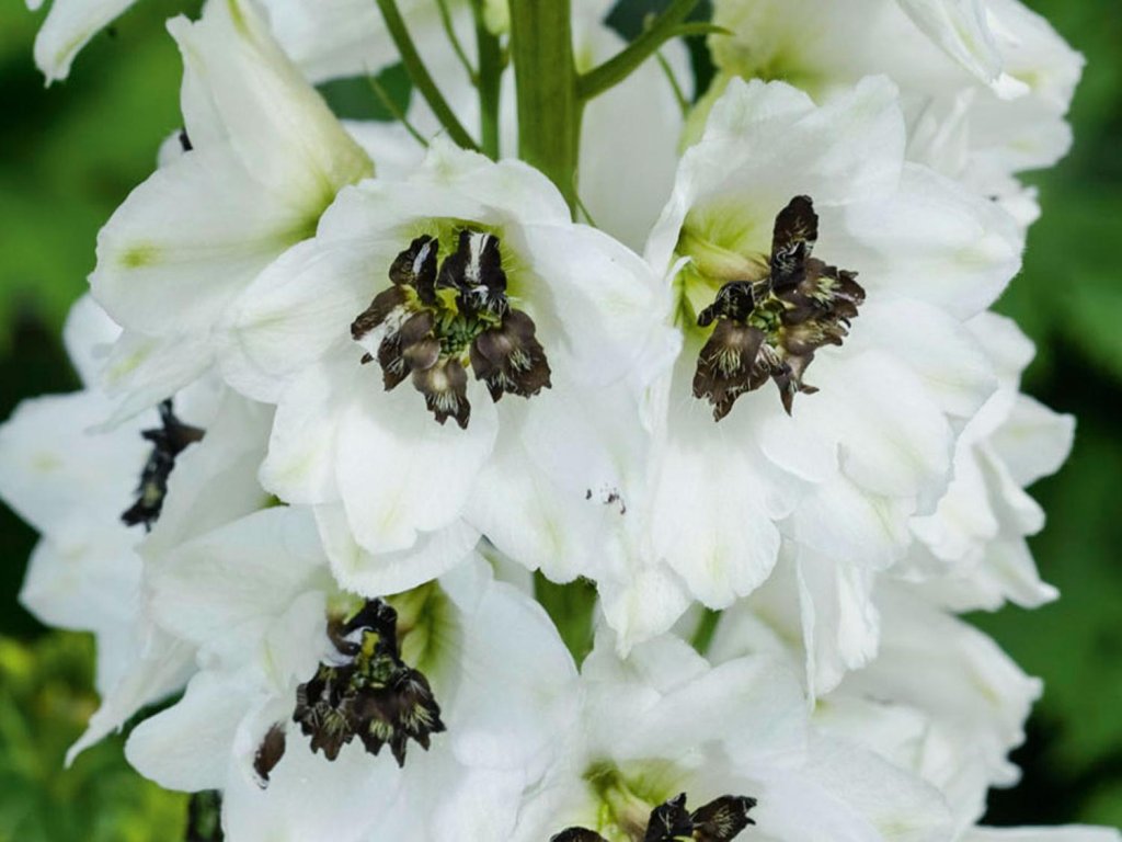 Ostrožka 'Magic Fountains White Dark Bee' - Delphinium 'Magic Fountains White Dark Bee'