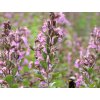 Ožanka - nízký, vytrvalý polokeř pocházející z oblasti jihovýchodní Evropy a Malé Asie, kde přirozeně roste na suchých, kamenitých stanovištích, v řídkých křovinách a na slunných svazích s vápenitým podložím. Druh se vyznačuje velmi kompaktním, polštářovitým habitem a dlouhodobě dekorativním vzhledem. Dorůstá přibližně 20–30 cm na výšku a 30–40 cm do šířky, postupně vytváří husté porosty. Listy má drobné, oválné, kožovité a nápadně lesklé, tmavě zelené barvy, částečně vytrvávající přes zimu. Od června do července se nad olistěním objevují krátká, vzpřímená květenství složená z drobných růžovofialových květů, které jsou významným zdrojem nektaru pro včely a další opylovače. Díky jemné struktuře a střízlivé barevnosti se ožanka uplatňuje jako půdopokryvná rostlina, lem záhonů, výplň skalek i suchých zídek a dobře zapadá do přírodních i moderních kompozic.