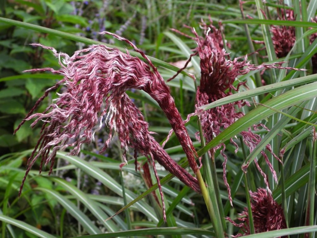 Ozdobnice čínská 'Boucle' - populárnější dekorativní travina, dorůstá výšky cca 120–150 cm a šířky okolo 70–90 cm. Květenství je husté, zkroucené laty, výrazně purpurové až vínově červené barvy. Kvést začíná od srpna až do října, poté se zesvětluje do stříbrna. Listy jsou tmavě zelené, s bílým středovým proužkem, na podzim zlátnou až oranžoví. Krásně se vyjímá jako solitér, předzahrádce nebo v smíšených záhonech. Zajímavou kombinaci tvoří například s hvězdnicemi, třapatkami, šantou nebo rozchodníky.