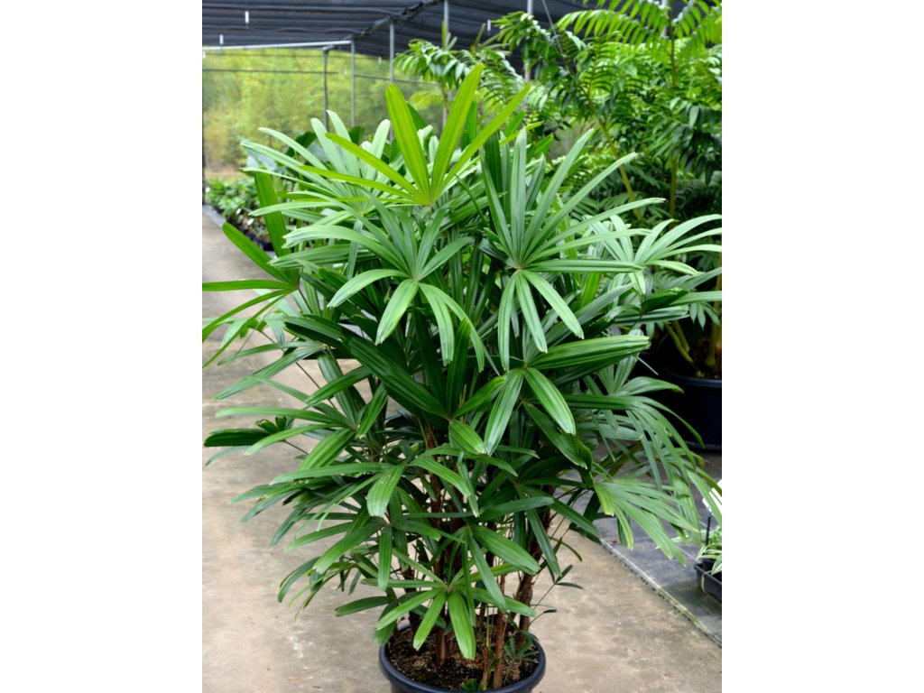 Palma rákosová - jedná se o velice elegantní, pomalu rostoucí palmu, která pochází původně z jihovýchodní Asie. Tento druh kultivaru vytváří trsy štíhlých, bambusovitých stonků s vějířovitými, hluboce vykrojenými, tmavě zelenými listy. Listy jsou rozděleny do 5-10 prstovitých segmentů. V pokojových podmínkách dorůstá výšky kolem 1,5-2 metrů. Kultivar se rozrůstá pomocí podzemních oddenků a vytváří nové stonky kolem mateřské rostliny. Kultivar je netoxický, vhodná do domácností s dětmi nebo domácími mazlíčky. Kultivar je vhodný do kanceláří, hal i veřejných prostor, ale také jako neobvyklí prvek do domu či zimních zahrad. Výhodou kultivaru je schopnost čistit vzduch.