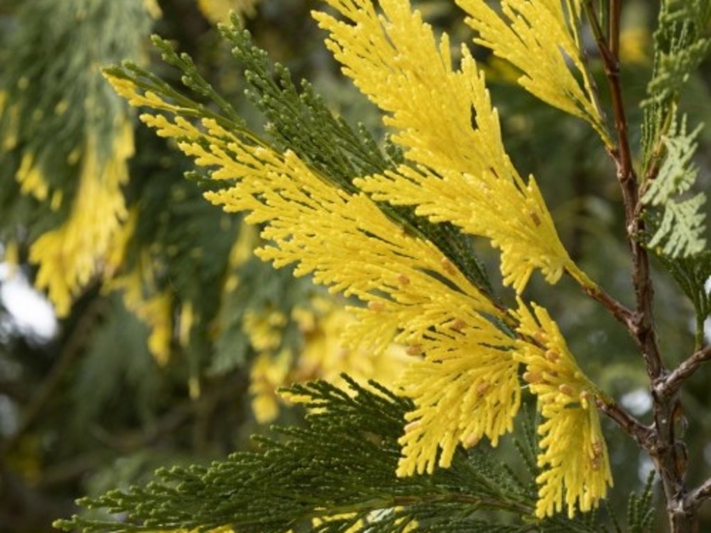 Pazerav sbíhavý 'Aureovariegata' - vzácný, stálezelený jehličnan pocházející ze západu Severní Ameriky. Tento kultivar je ceněn pro své výrazné panašování, jeho šupinaté jehlice jsou kombinované, na stromu se střídají zelené se zlatavými, které dodávají stromu zajímavý, svěží vzhled. Roste pomalu a může dorůst až 10–15 metrů, přičemž vytváří úzkou, sloupovitou nebo kuželovitou korunu. Je poměrně odolný vůči suchu a znečištění ovzduší, což ho činí vhodným pro městské prostředí. Díky svému elegantnímu zbarvení a tvaru se skvěle hodí do parků a reprezentativních částí zahrad jako solitérní strom. Lze jej velmi dobře tvarovat.