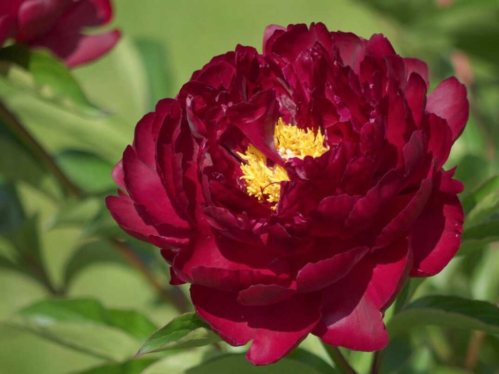 Pivoňka 'Black Star' - rod Paeonia zahrnuje byliny i dřeviny, v zahradní praxi však nejčastěji tvoří trsy bylinných pivoněk, které na jednom místě vydrží mnoho let. Kultivar 'Black Star' se uplatňuje především barvou květů. Poloplné květy o průměru zhruba 10–14 cm mají temně vínové okvětní plátky se sametovým leskem a v centru zůstává věnec žlutých tyčinek, takže květ nepůsobí ploše ani z větší vzdálenosti. Kvetení nastupuje obvykle v červnu, podle průběhu jara může začínat na přelomu května a června. Rostlina vytváří vzpřímené stonky a kompaktní habitus přibližně 0,6–0,9 m na výšku i do šířky. Hluboce dělené listy jsou tmavozelené a po odkvětu fungují jako klidná hmota v záhonu, která dobře nese doprovodné trvalky. Tmavá barva květů vyniká vedle šedomodrých listů šalvějí a levandulí, s bílými kosatci, s modrými kakosty i s okrasnými česneky. Květy jsou použitelné k řezu, nejdéle vydrží při sklizni v rané fázi rozvíjení poupěte.