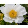 Pivoňka čínská 'Krinkled White' - jedna z nejlepších čínských pivoněk, s jednoduchým květenstvím. Kultivar 'Krinkled White' uvedl A. P. Brand v roce 1928 a patří mezi osvědčené jednoduchokvěté kultivary, oceněné také APS Award of Landscape Merit (2009). Rostlina vytváří vytrvalý, hustý trs přibližně 80–90 cm vysoký a 60–90 cm široký. Na jaře raší pevnými lodyhami, listy jsou hluboce dělené, sytě až středně zelené a zůstávají dekorativní do podzimu, kdy se často přibarvují. Na přelomu května a června se otevírají velké jednoduché květy 15–18 cm. Široké bílé plátky působí jako z krepového papíru a rámují nápadný chochol zlatožlutých tyčinek, díky nimž je střed dobře přístupný včelám i čmelákům. Vůně bývá jemně sladká, výraznější za teplého počasí. Pevné, vzpřímené stonky podporují využití jako květ k řezu a v kompozicích se kultivar přirozeně kombinuje s kosatci, šalvějemi, šantou, kakosty, okrasnými travinami i s růžemi v jemných tónech. Rostlina není jedlá.