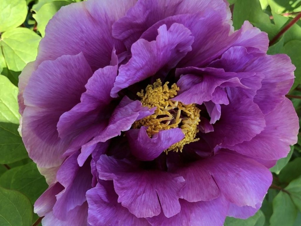 Pivoňka dřevitá 'Ofujinishiki' - japonský kultivar dřevité pivoňky, navazující na dlouhou tradici pěstování keřových pivoněk ve východní Asii. Vytváří opadavý keř s vytrvalými dřevnatými výhony, které postupně sílí do pevné kostry, takže s věkem obvykle roste i pravidelnost kvetení. Po výsadbě se rostlina často 1–2 roky soustředí na zakořenění a plnějšího habitusu dosahuje zhruba v 6–10 letech. V podmínkách ČR se obvykle ustálí na 1,2–1,5 m výšky a 1,0–1,3 m šířky. Koncem května až v červnu rozkvétají poloplné květy 15–20 cm v lila až fialových tónech, s otevřeným středem a nápadnými žlutými tyčinkami. Květy bývají jemně, sladce provoněné a díky přístupnému středu poskytují pyl včelám i čmelákům. V řezu vyniknou zejména v mělké míse, kde se zvýrazní kontrast okvětních plátků a žlutého středu. Hluboce dělené listy jsou v sezoně tmavě zelené, při rašení mohou lehce bronzovět a po odkvětu tvoří klidné pozadí pro letní trvalky. V kompozici se osvědčuje u teplé zídky, před tmavou zelení jehličnanů nebo ve společnosti bohyšek, dlužich a jarních cibulovin. Rostlina není jedlá.