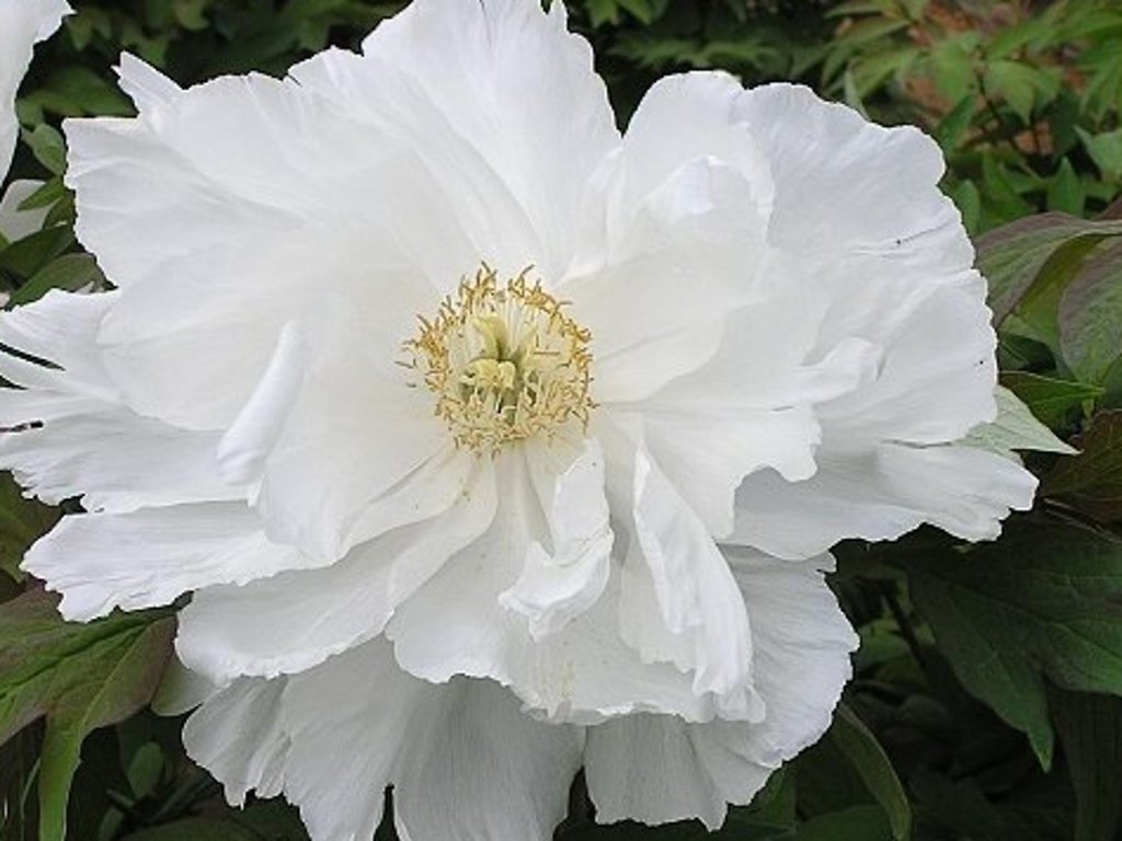 Pivoňka dřevitá 'Okinajishi' - pivoňka s čistě bílými květy. Jemnost z ní přímo vyzařuje. Květy působí jemným a ladným dojmem. V dospělosti může tato pivoňka dorůst do výšky cca 1 m.