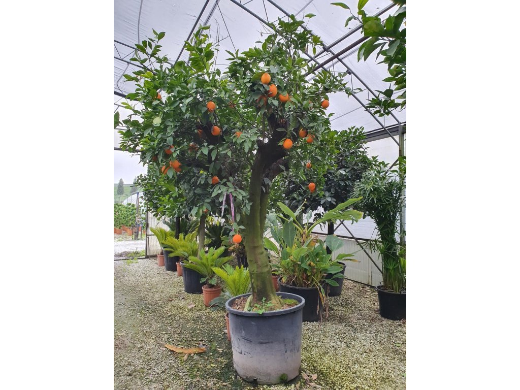 Pomerančovník čínský 'Arancio' - odrůda sladkého pomerančovníku čínského z okruhu středomořských citrusů, pěstovaná jako vždyzelený strom s jedlými plody. V nádobě ve středoevropských podmínkách se obvykle udržuje kolem 2–3 m výšky a 1,5–2 m šířky, takže se hodí i do menších zahrad a na terasy. Koruna je hustá, větve nesou krátké trny a tmavě zelené, kožovité listy s citrusovou vůní, které vytvářejí s plody výrazný celoroční dekor. Na jaře, zpravidla od dubna do června, rozkvétají na mladých výhonech bílé, asi 2 cm velké květy s intenzivní, sladce kořenitou vůní, jež v teple láká opylující hmyz. Plody jsou kulaté až mírně zploštělé, středně velké, se sytě oranžovou, hladkou slupkou a šťavnatou dužninou jemně sladkokyselé chuti, vhodné k přímému jídlu, do dezertů i k lisování šťávy. V nádobách v našich podmínkách dozrávají většinou od prosince do února podle průběhu zimování. Stejně jako jiné pomeranče obsahují hlavně vitamin C a další látky prospěšné pestré stravě, takže doplňují zimní jídelníček i domácí limonády. Díky kompaktnějšímu růstu a možnosti vedení na kmínku bývá 'Arancio' oblíbený jako dekorativní, ale zároveň úrodná nádobová dřevina pro terasy, balkony, zimní zahrady i světlé interiéry.