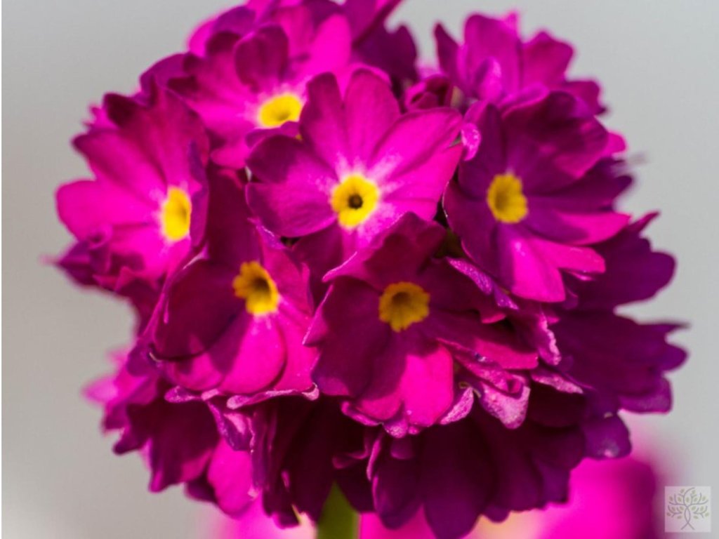 Prvosenka zoubkatá 'Rubin' - kultivar prvosenky zoubkaté, který se vyznačuje sytě červenými květy s žlutým středem. Má nádherně sytě červené květy s žlutým středem , které jsou uspořádány do kulovitých květenství na vrcholu stonků. Tyto květy představují výrazný a atraktivní prvek v zahradě. Listy jsou světle zelené a mají jemně zoubkované okraje. Vytvářejí hustou růžici při zemi, což poskytuje zajímavý kontrast k červeným květům. Rostlina dosahuje výšky asi 20-30 cm a má kompaktní a vzpřímený růst. Rozrůstá se do šířky přibližně 20-30 cm, což ji činí vhodnou pro výsadbu do záhonů, skalek nebo do truhlíků. Tato odrůda je skvělou volbou pro výsadbu do stinných částí zahrady, kde poskytuje výraznou a barevnou přísadu. Je vhodná i do okrajů záhonů nebo do truhlíků na terase či balkoně.