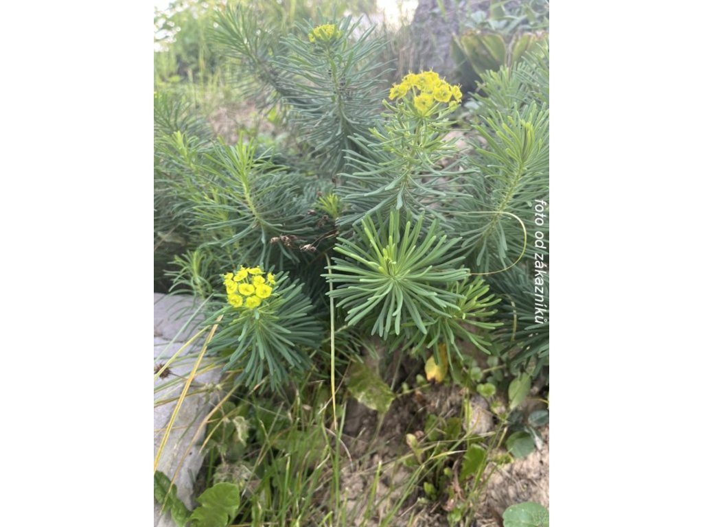 Pryšec chvojka - vytrvalá bylina z čeledi pryšcovitých (Euphorbiaceae), původní v Evropě a západní Asii. V přírodě roste na suchých stráních, stepních loukách a v kamenitých trávnících, kde přežívá díky oddenkům. V zahradě vytváří rhizomatózní porost s množstvím vzpřímených lodyh, obvykle 20–40 cm vysokých, a s velmi úzkými, jehlicovitými listy v modrozeleném odstínu. Na jaře bývají mladé výhony svěže zelené, v létě se olistění zjemní do šedomodré, takže porost působí jako nízký „mlžný“ polštář. Na přelomu května a června se na vrcholcích objevují okolíkovitě uspořádaná květenství, kde hlavní okrasu tvoří zelenožluté listeny. Ty při dokvétání často oranžoví až červenají a barva na několik týdnů zvýrazní přední okraj záhonu. Šíření probíhá především podzemními výběžky. Všechny části obsahují bílou mléčnou mízu, která je jedovatá a při kontaktu dráždí kůži i oči, proto se při práci doporučují rukavice. V kompozicích se uplatňuje jako nízké patro pod suchomilnými keři, v přírodních výsadbách i jako výplň mezi kameny. Jemná textura listů kontrastuje s levandulí, šalvějí, rozchodníky i s trsy kostřav.