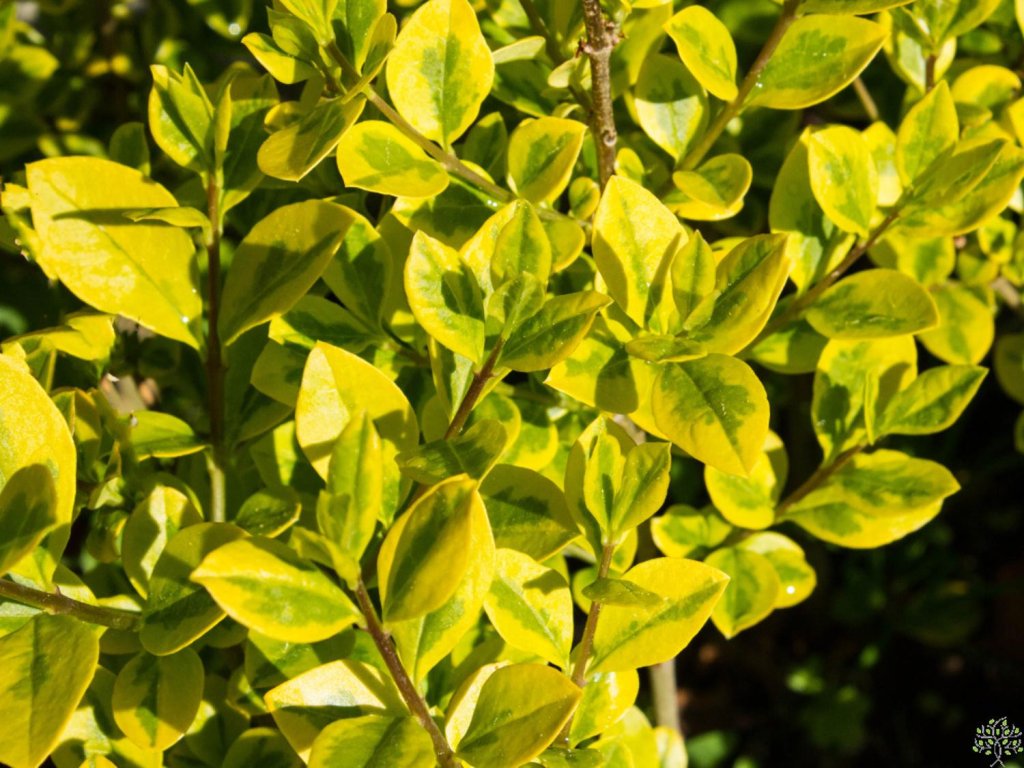 Ptačí zob vejčitolistý 'Aureum' - pochází z Japonska a Koreje, kde roste na okrajích lesů a v křovinách v propustných půdách s dostatkem vláhy. Kultivar 'Aureum' je tradiční panašovaná selekce pěstovaná pro barvu listů a v evropských katalozích se uvádí i s oceněním RHS Award of Garden Merit. Keř roste vzpřímeně a hustě, obvykle středně rychle, roční přírůstky se často pohybují okolo 25–40 cm. V zahradách dosahuje přibližně 2–3 m výšky a 1–2 m šířky, při pravidelném řezu zůstává nižší a kompaktnější. Vstřícné, kožovitější listy jsou vejčité, často 4–6 cm dlouhé, uprostřed zelené s nepravidelným zlatožlutým lemem, který se v chladném období může zbarvovat do růžovo hnědé barvy. V teplejších zimách část listů přetrvává, v mrazech keř více shazuje olistění a působí poloopadavě. V červnu až červenci se na koncích výhonů objevují vzpřímené laty drobných bílých květů, jejichž vůně bývá výrazná a ne každému příjemná, přesto je vyhledávají opylovači. Po odkvětu mohou dozrávat černé bobule, dekorativní pro ptactvo, nikoli ke konzumaci, protože jsou jedovaté. V kompozicích se uplatňuje jako světlý prvek k tmavolistým dřevinám, do městské zeleně i jako tvarovaný solitér.