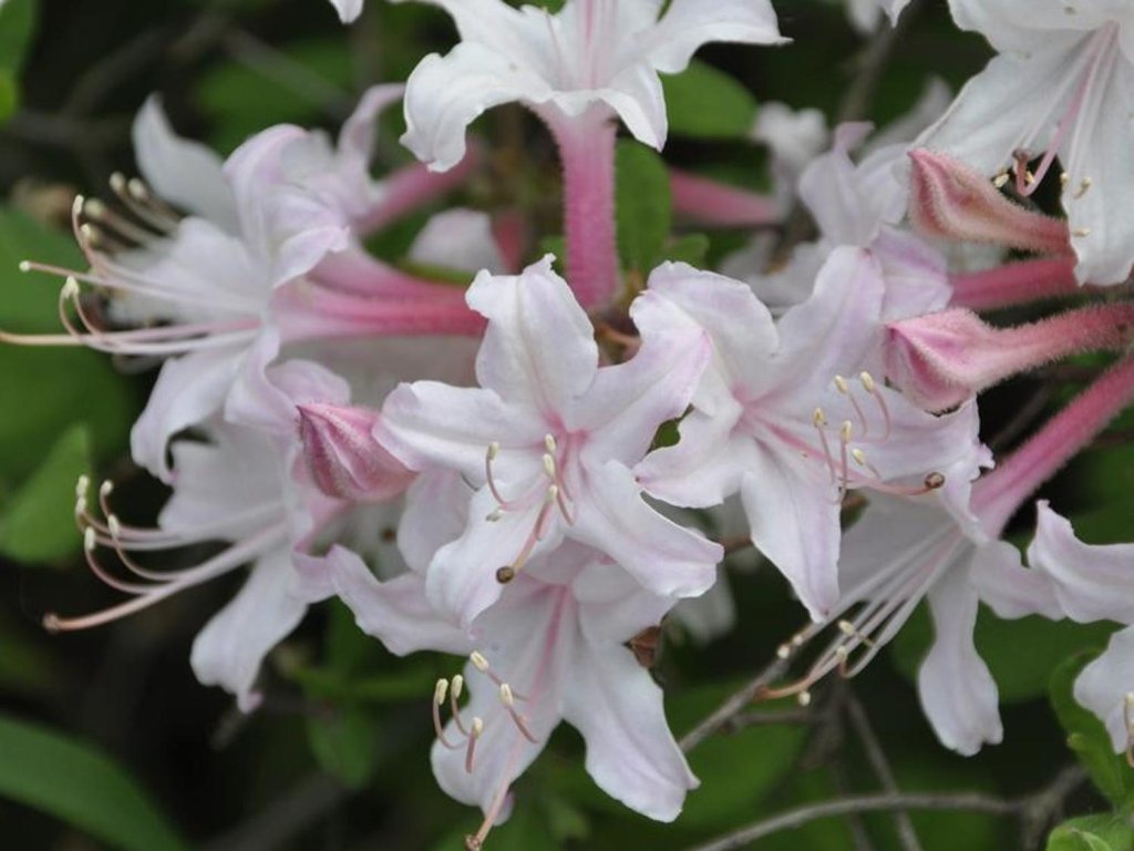 Rododendron atlantský - opadavý nízký keřík, který dorůstá do výšky 50-100cm v podmínkách jemu vlastních. Jedná se neobvyklou odrůdu rododendronu poléhavého charakteru. V průběhu dubna a května zdobí keř netradiční a velice dekorativní smetanově bílé květy s nádechem růžové. Ty se objevují částečně před olistěním a posléze zároveň s listy. Květy svou velice intenzivní vůní dost často poutají pozornost motýlů. Olistění má podlouhlý tvar a zelenou barvu s modravým nádechem a žilkováním. Tato rostlina je vhodná do skupinové výsaby.