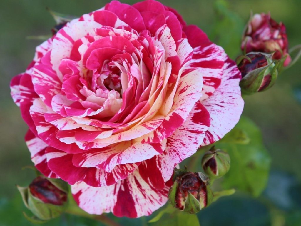 Růže 'Abracadabra®' - keřová růže, dorůstající výšky 50-80 cm. Růst je vzpřímený. Samotné květy jsou středně velké a poloplné, probarvení květu červené s příměsí bílé barvy. Celý květ působí velmi něžně a romanticky. Pyšní se sladkou vůní, připomínající citrusy. Nakvétá opakovaně, a to od června až do října. Rostlina je dobře odolná vůči chorobám a mrazu.